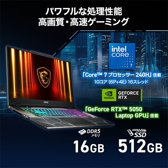 | グラフィック | NVIDIA GeForce RTX 5050 Laptop GPU、8GB GDDR7 |