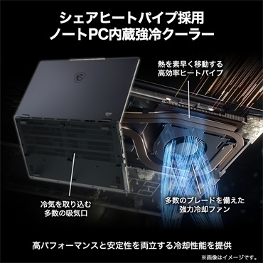 CPU・GPUの熱を効率的に排出し、長時間のハードなゲームプレイでも高パフォーマンス状態を安定的に維持できる冷却性能を提供。