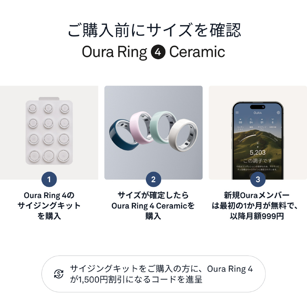 高性能ジルコニアセラミックで丁寧に作られたOura Ring 4 Ceramicは、洗練された上品さと革新的な素材の魅力を兼ね備えています。