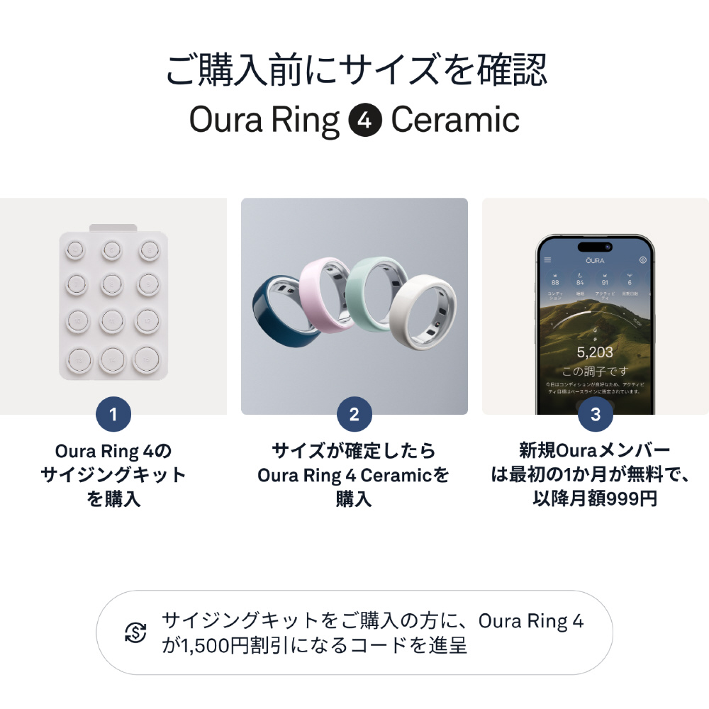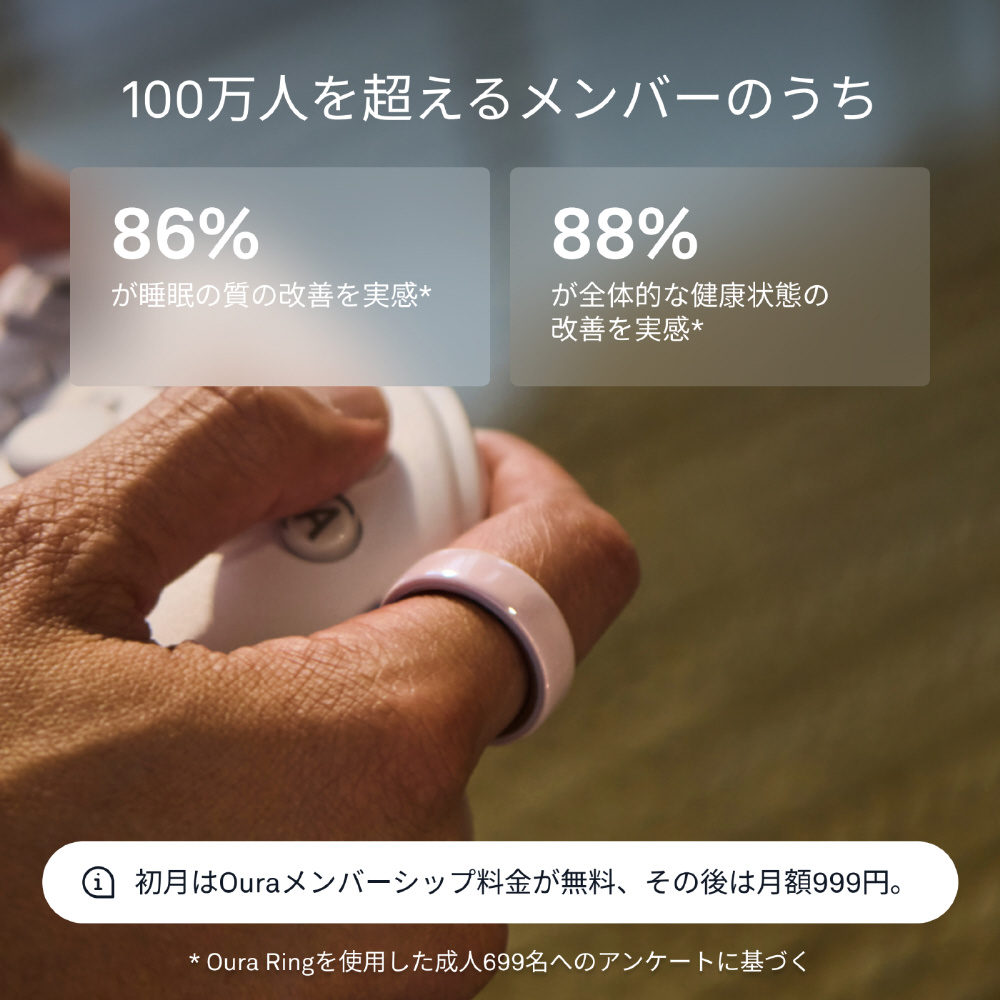 高性能ジルコニアセラミックで丁寧に作られたOura Ring 4 Ceramicは、洗練された上品さと革新的な素材の魅力を兼ね備えています。