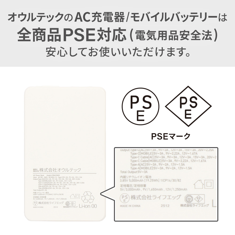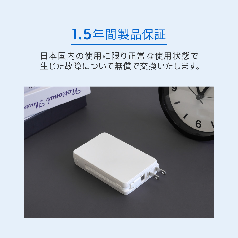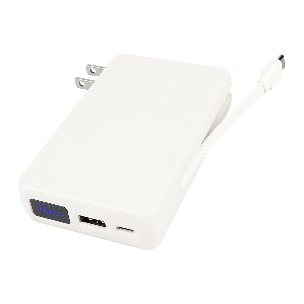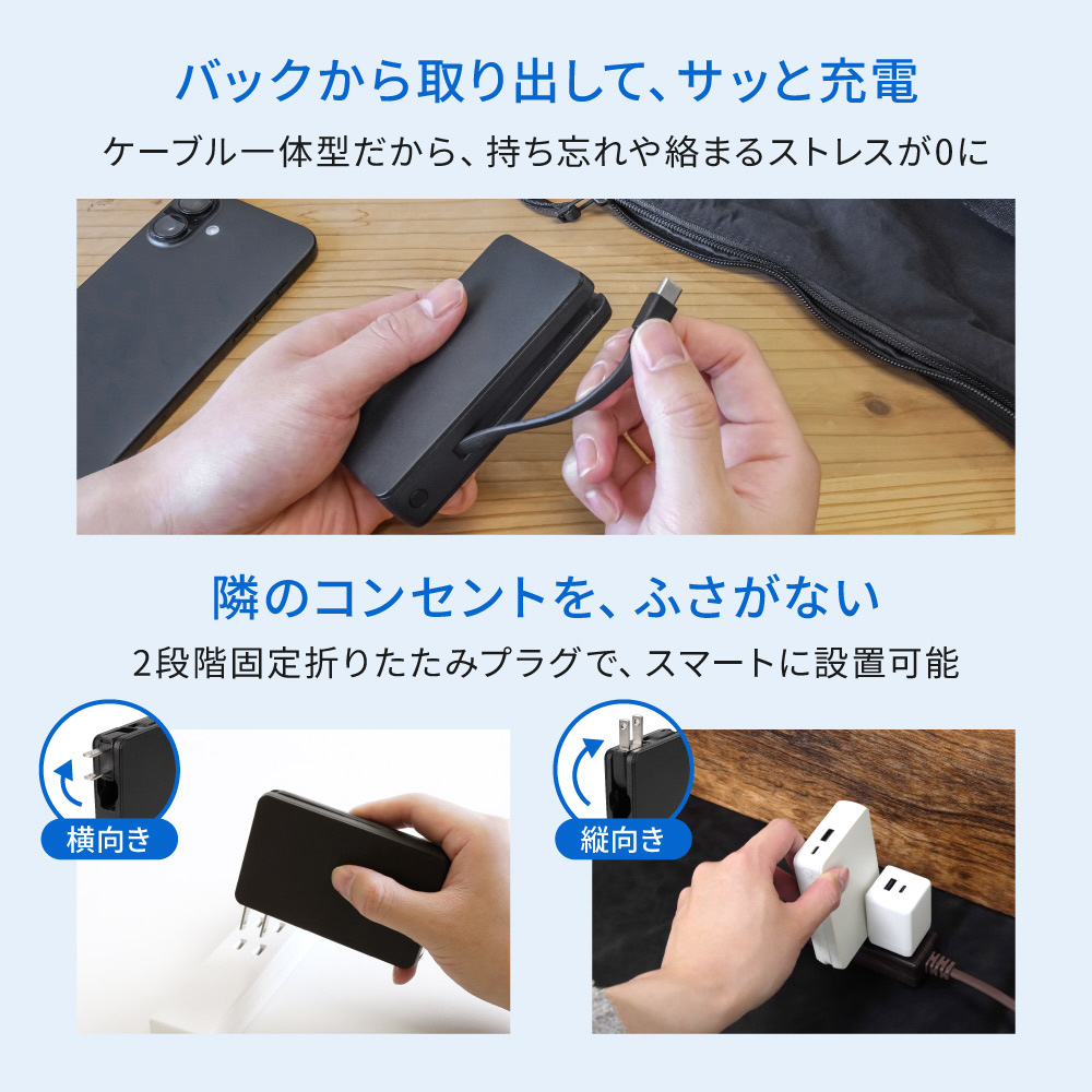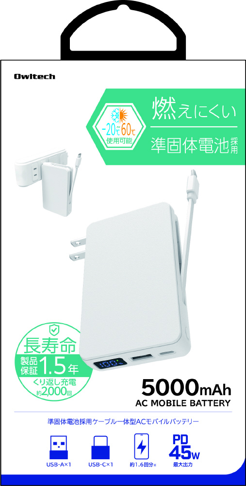 モバイルバッテリー AC付き 5000mAh 準固体電池採用 USB Type-Cケーブル一体型 デジタル表示搭載 PD45W対応