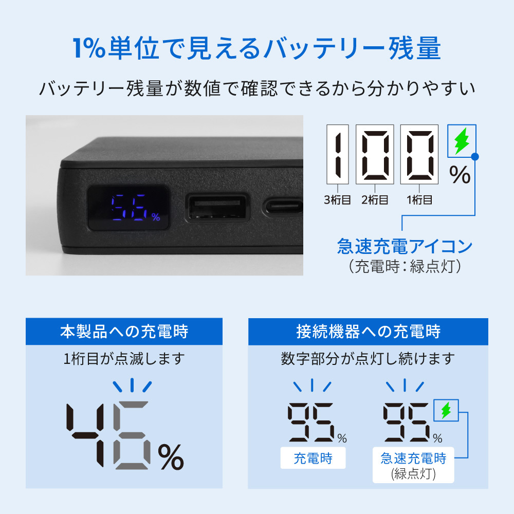 モバイルバッテリーの場合も最大20W出力するのでスマートフォンやタブレットを効率よく充電できます。