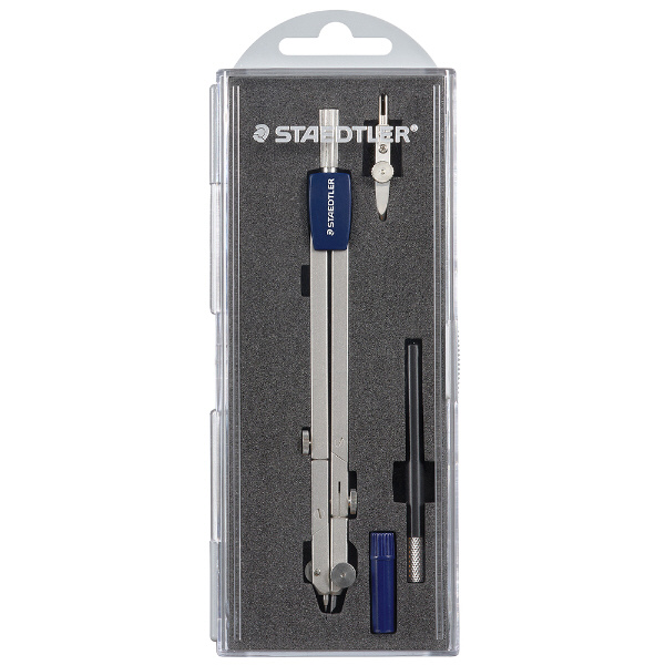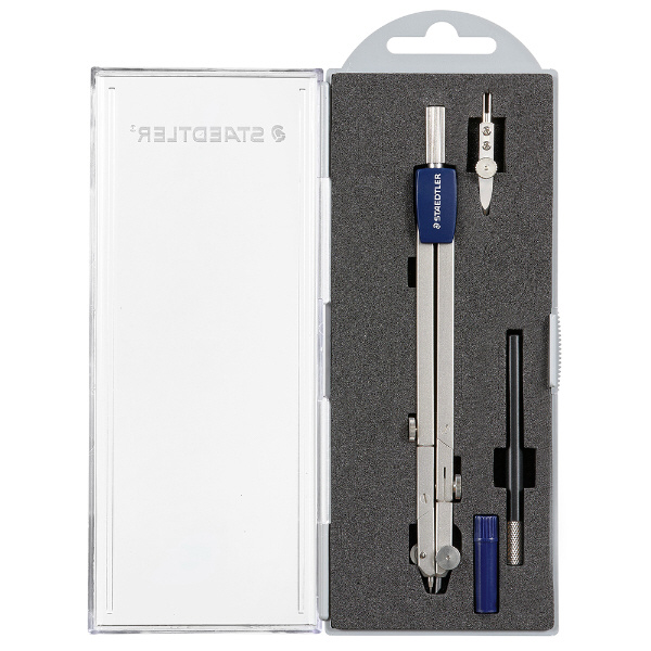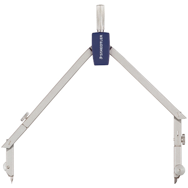 延長棒(テレスコピック)を内蔵し、大きな円も描けるベーシックコンパス。