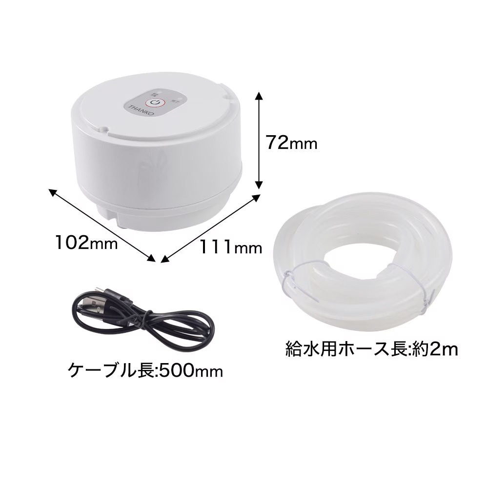 | 付属品 | 本体、USB TypeCケーブル、給水用ホース、日本語取扱説明書 |