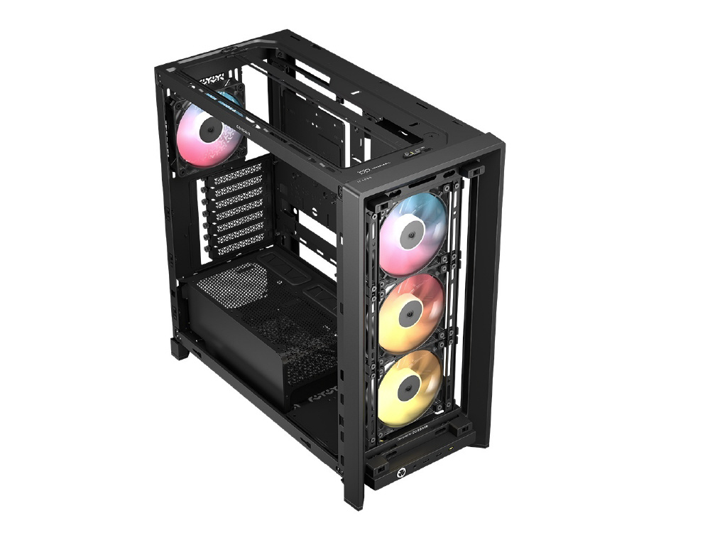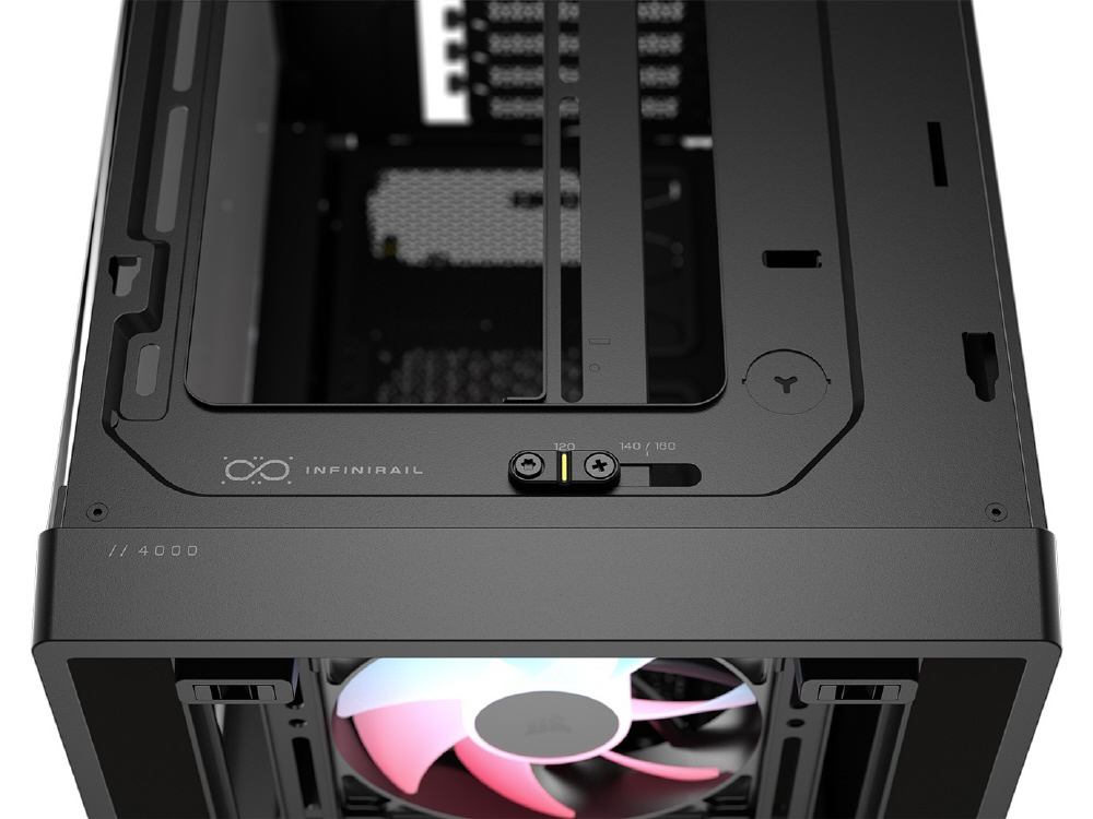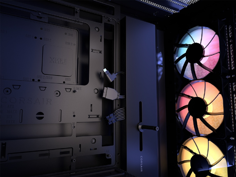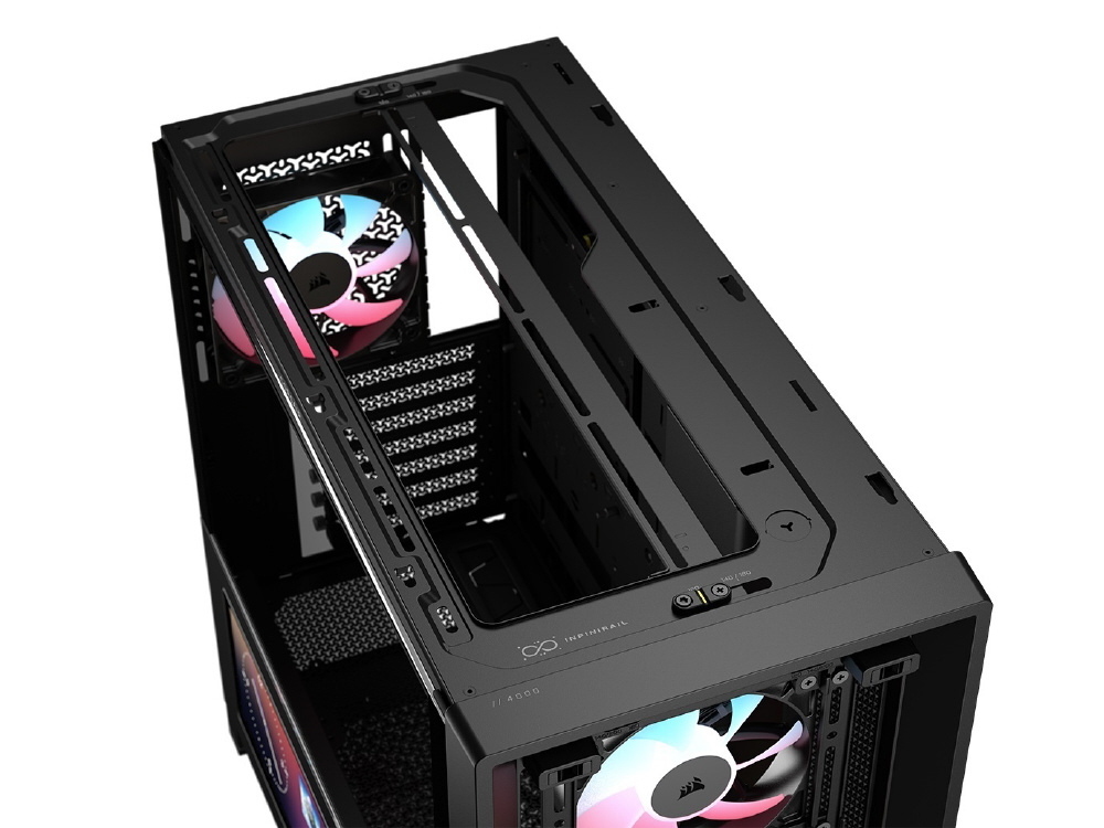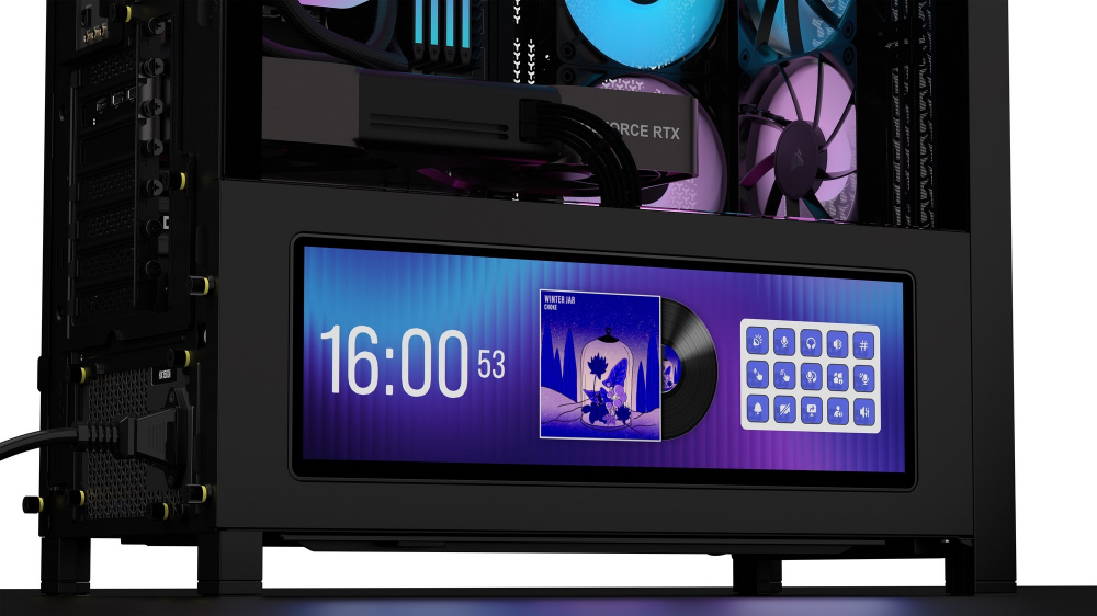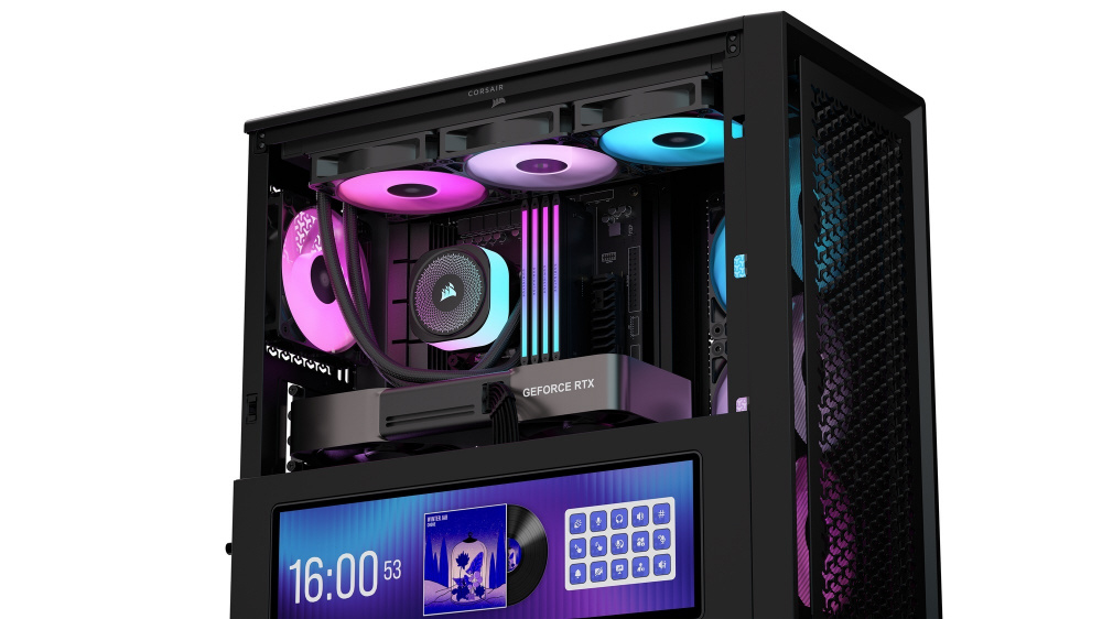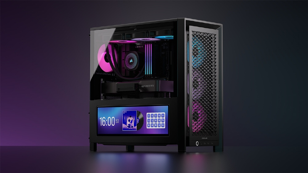LCDタッチスクリーン「XENEON EDGE」を搭載。InfiniRailシステムを採用し4基のARGBファンを備えるミドルタワー型PCケース