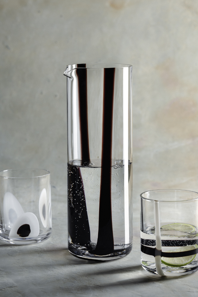ハンドメイドの模様が美しいピッチャー。タイムレスなエレガンスと個性を兼ね備え、食卓に上品な存在感を与えます。水やワイン、レモネードにも最適。デザインと品質にこだわる方におすすめです。