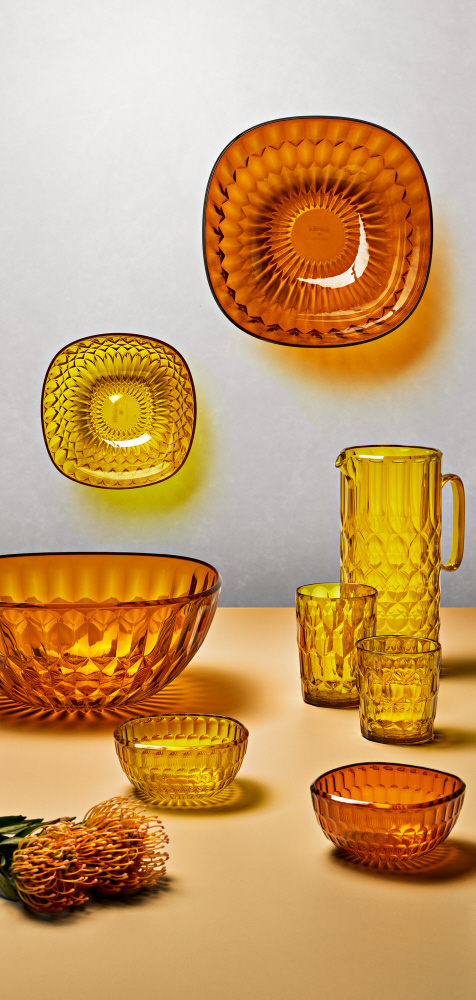 ガラスのような美しさを持つアクリル製テーブルウェア。ダイニングやレストランなどの屋内はもちろん、割れにくいのでガーデンやアウトドアでもお使いいただけます。