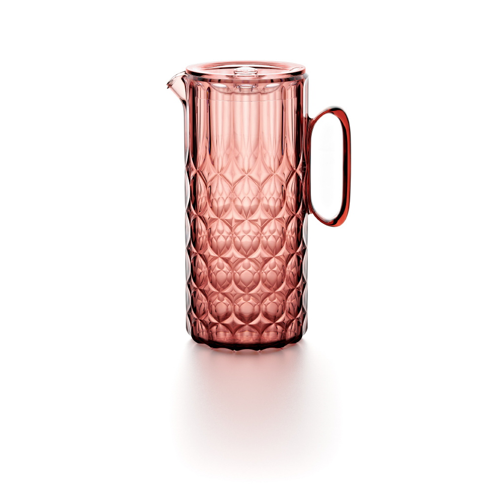 持ち運びが軽く、割れにくいのも嬉しいピッチャー。蓋が付いていて、フォーマルなランチや自宅や屋外でのカジュアルなパーティーにも最適です。軽量なため取り扱いやすく、キッチンからテーブルへの移動も簡単。カフェやレストランにもお勧めです。キラキラと光をキャッチするデザインとオシャレなカラーでテーブルを彩ります。
