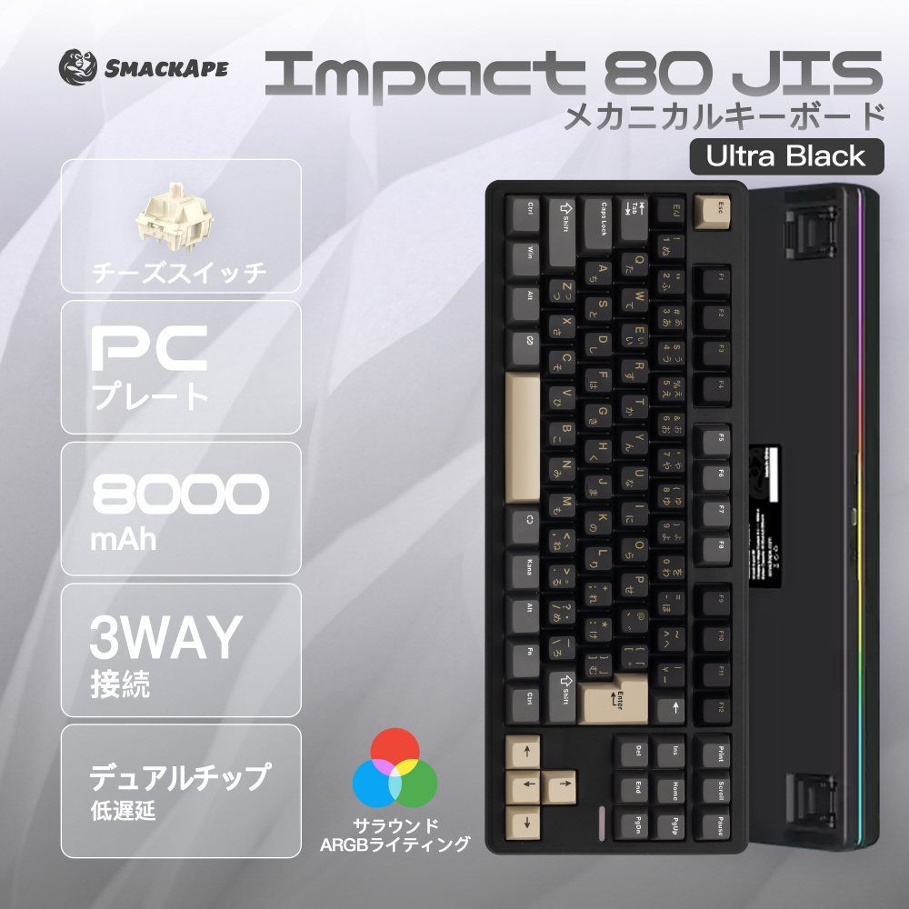 新興メーカー「SmackApe」のコストパフォーマンスに優れた80%レイアウトのメカニカルキーボード「Impact 80」に、日本語配列モデルが新たにラインナップに加わりました。