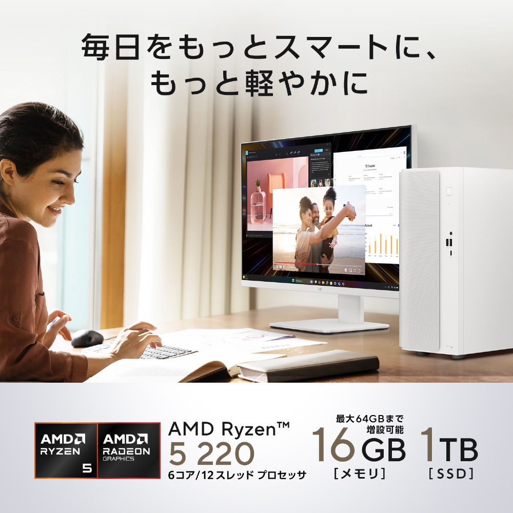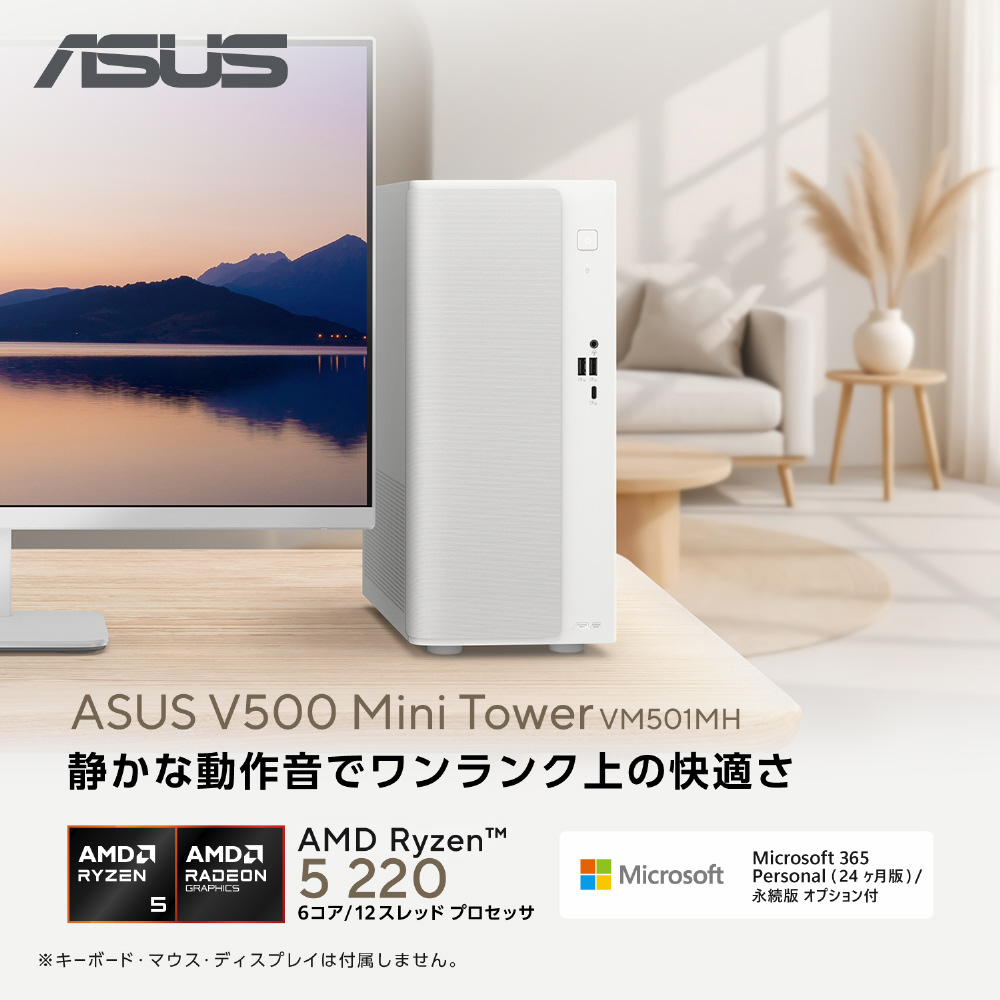 VM501MH-0R5220161TBO デスクトップパソコン V500 Mini Tower ホワイト [モニター無し /Windows11 Home /AMD Ryzen5 /メモリ:16GB /SSD:1TB /Office HomeandBusiness /2026年2月モデル]