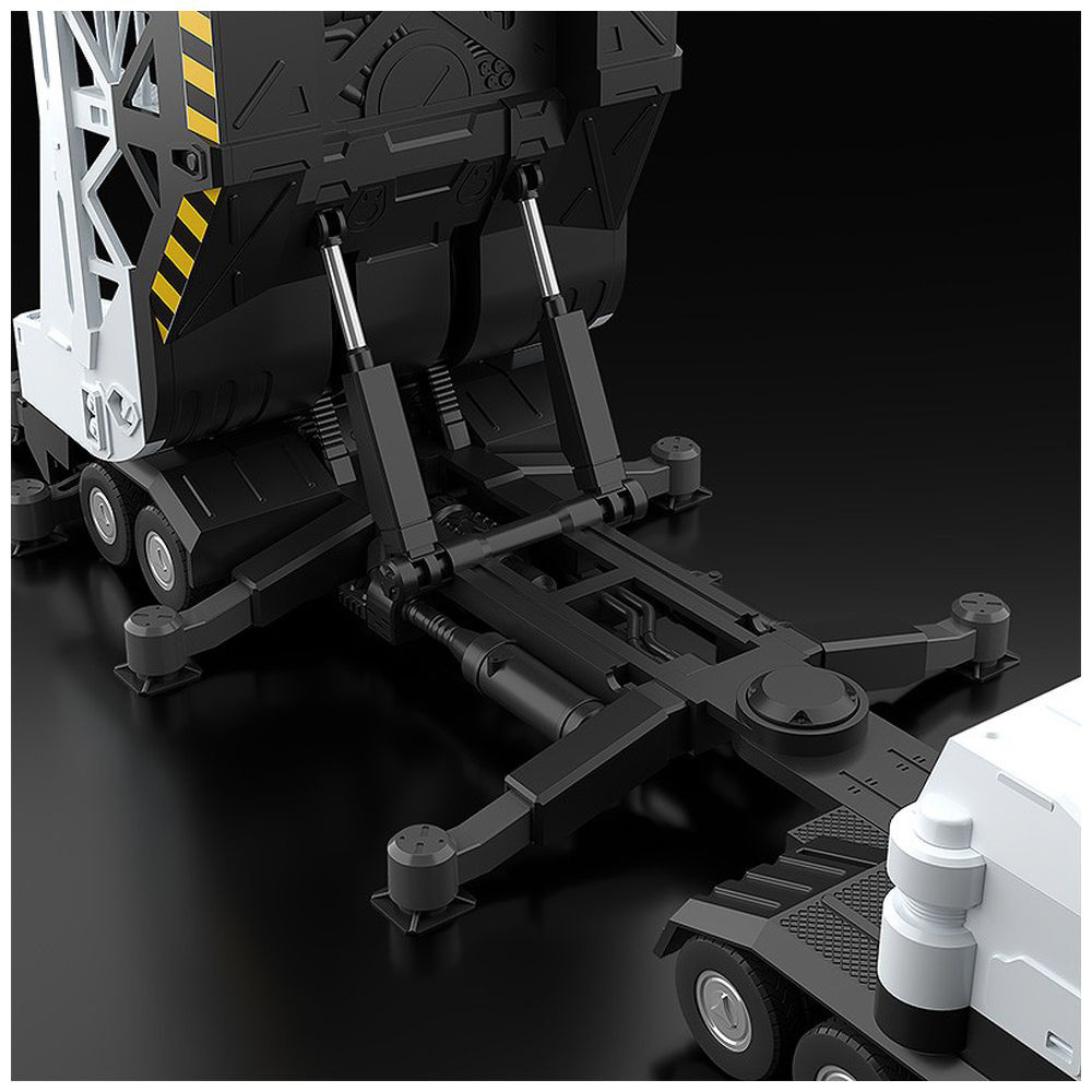 レイバー固定用のアーム可動およびクレーンの回転、ステップ部の伸縮ギミックを備えています。