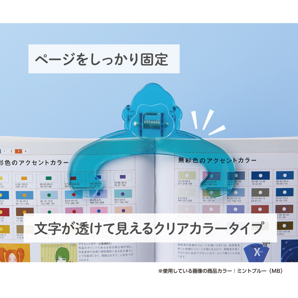 ■文字が透けて見えるクリアカラータイプ。クリップでとじた部分も文字が隠れません。