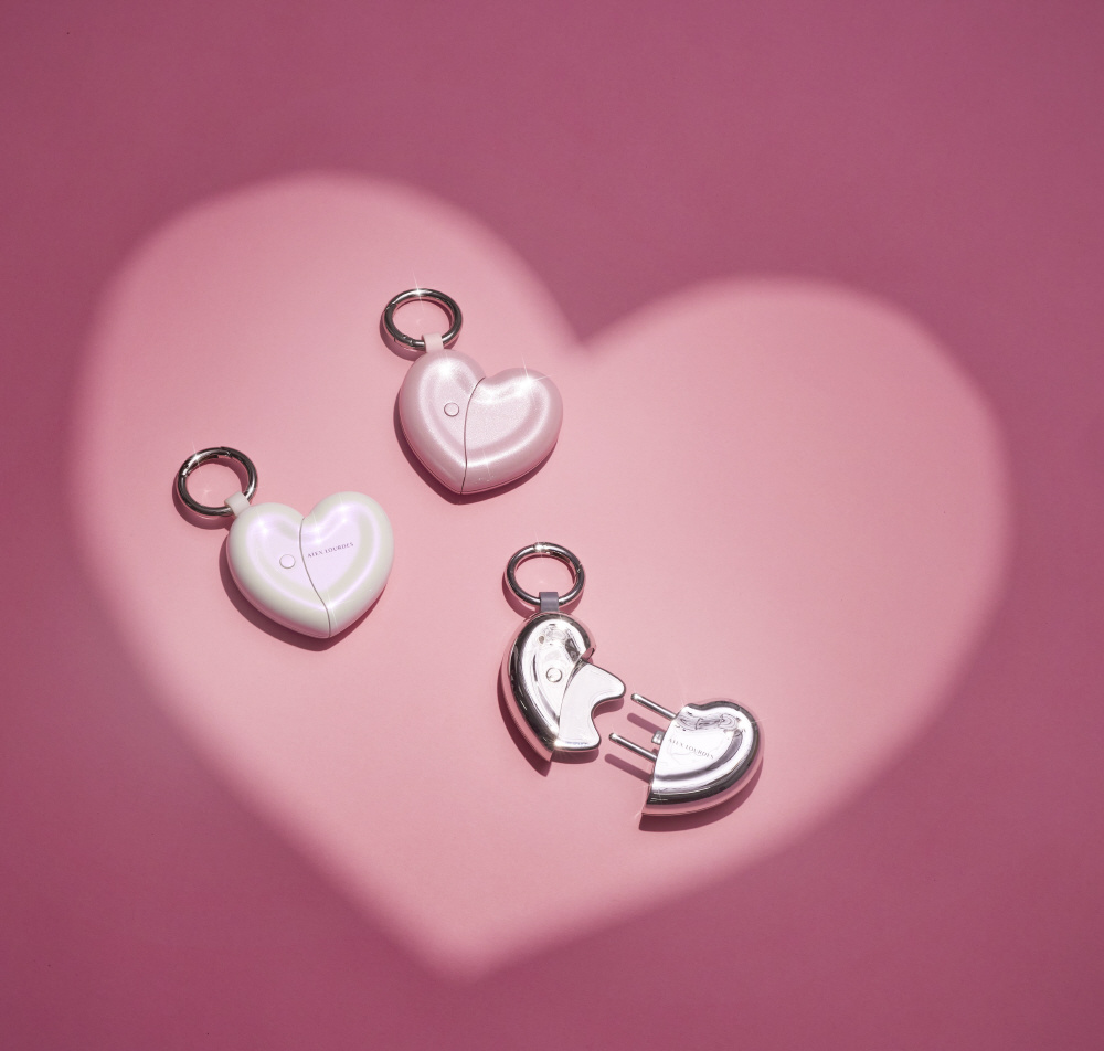 ハート型デザインで、ポーチやポケットにすっぽり収まるコンパクトサイズ。バッグに付けてかわいく持ち運びができ、外出先や旅行でもサッと手軽にケアできます。