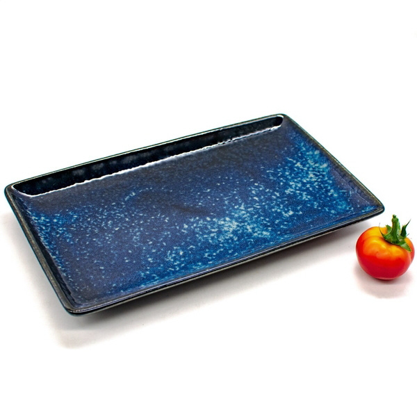 ナチュラルカラー 長角皿 焼皿 プレート 皿 約21×13cm ネイビー 紺