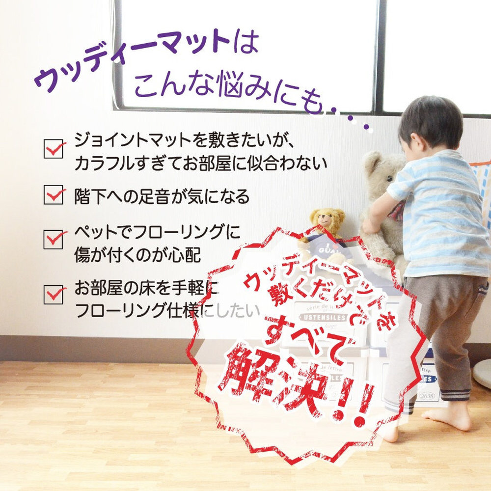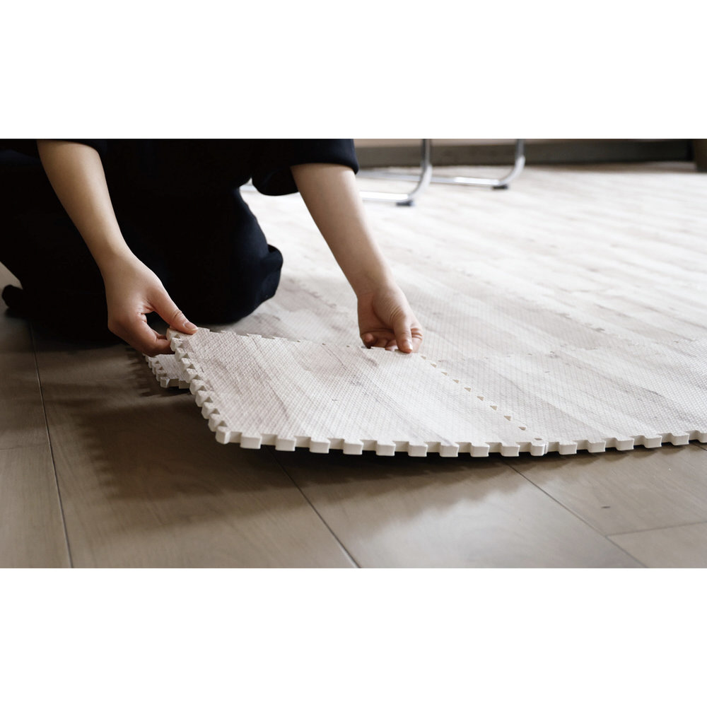 好きな形につなげて敷けるクッション性のある「やわらかウッディマット9枚組」