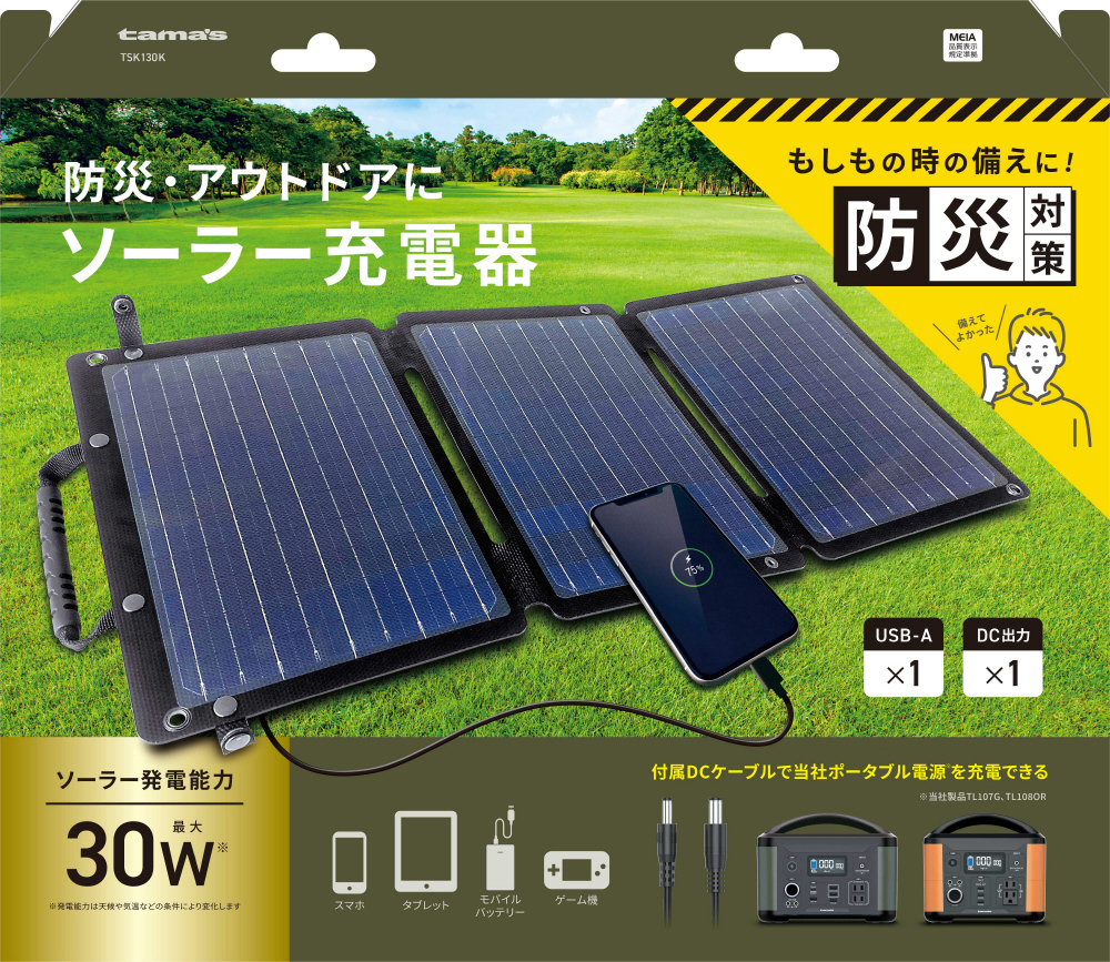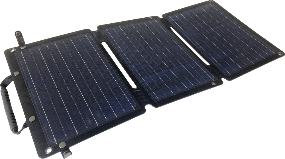 キャンプ・防災に役立つソーラー充電器 晴れていれば電源がとれないアウトドアで活躍します