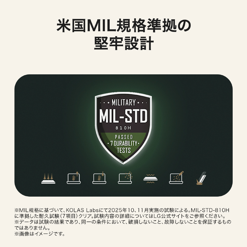 14インチの軽量・堅牢ボディに、次世代Copilot+ PCの性能と美しい画面、充実の端子類までを凝縮し、真の機動力と実用性を極めた Windows 11 Pro搭載 LG gram 2026年モデル。