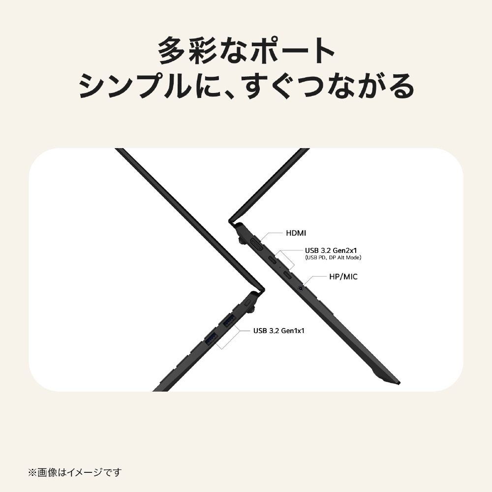 省電力設計と最大16GB LPDDR5X メモリー、最大512GB SSD NVMe(Gen4)、加えてM.2拡張スロット×1に対応し、動画編集やAIタスクをスムーズに進められます。