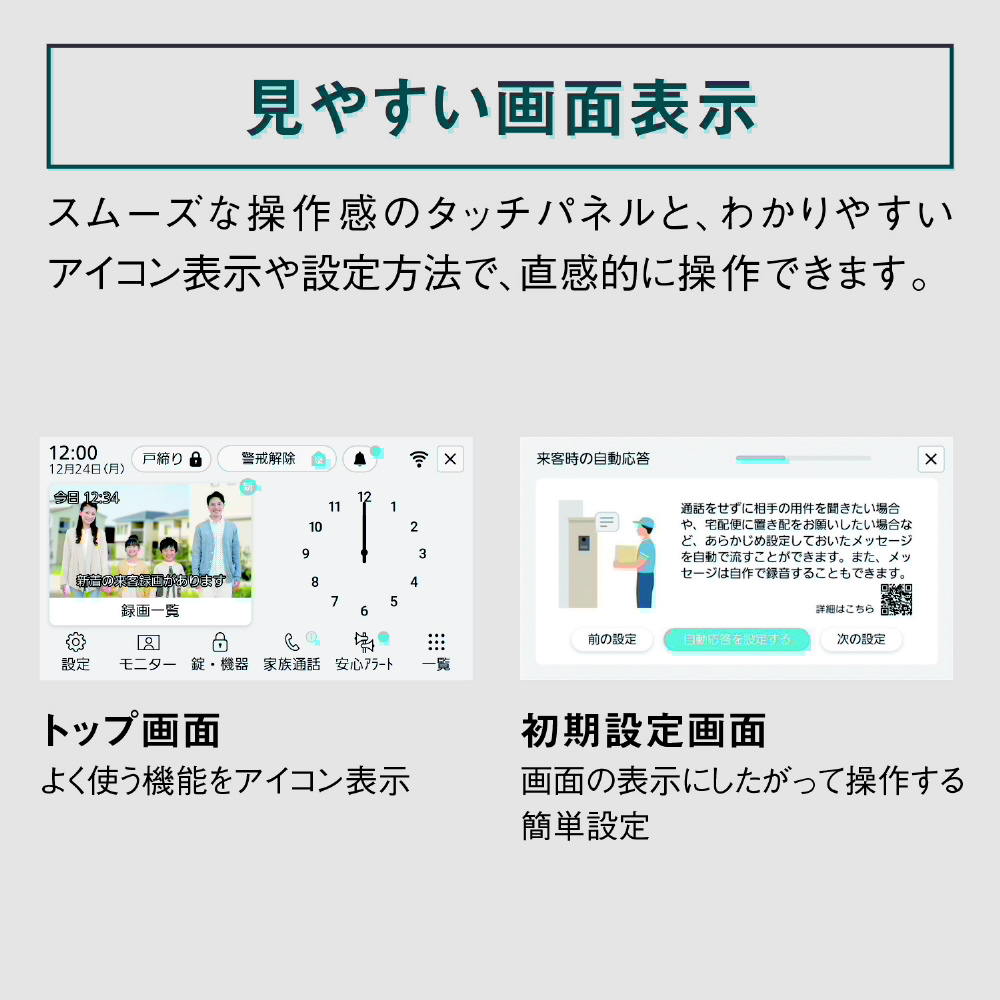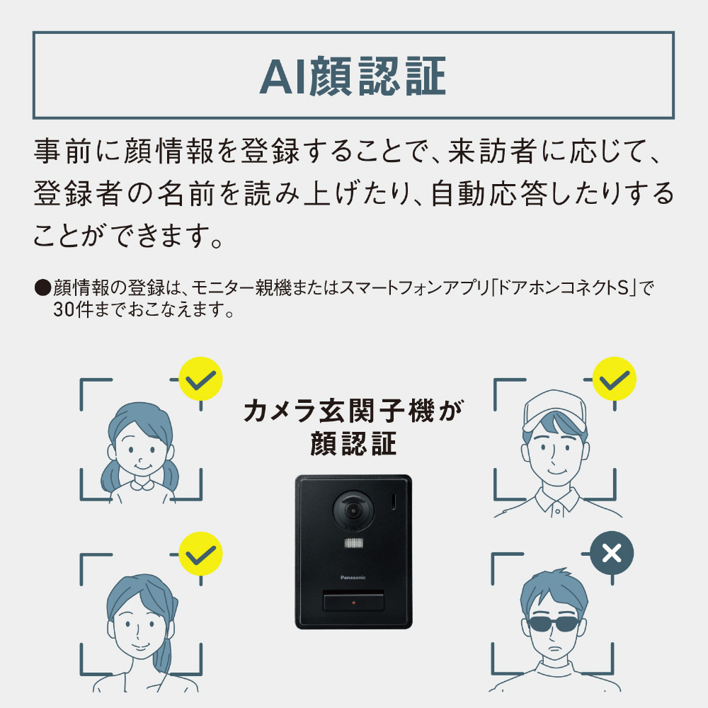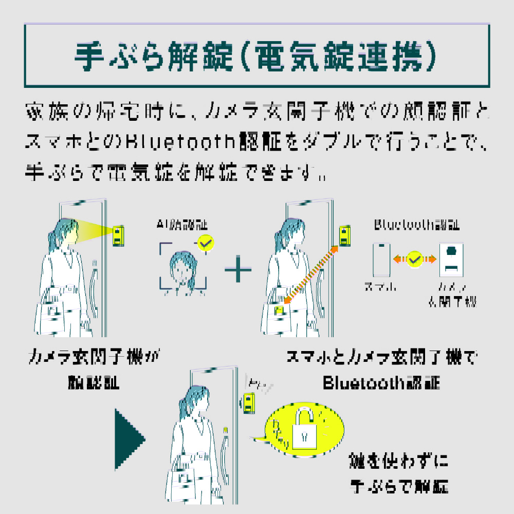 顔認証と玄関先の見守り機能が加わり、来訪者の確認も、防犯対策も、より確かなものに。
