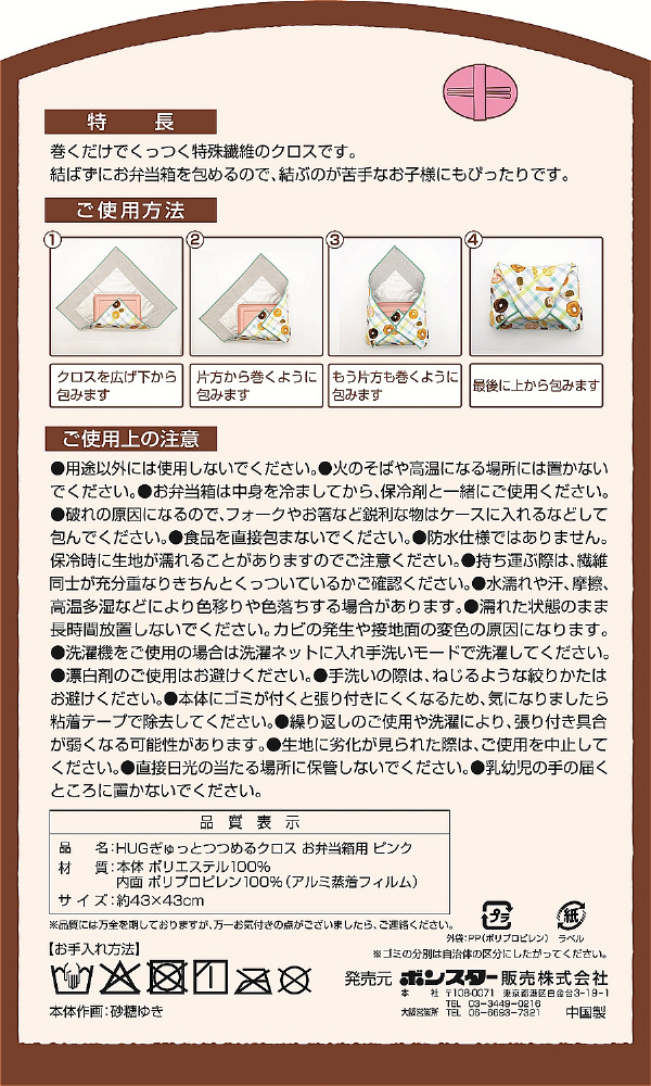 | 商品名 | HUGぎゅっとつつめるクロスお弁当箱用(ピンク) HUG-002 |