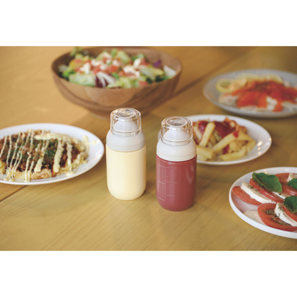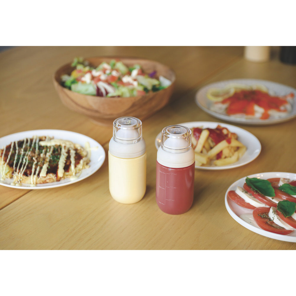 プッシュで適量注げる。適量の調味料が出せる