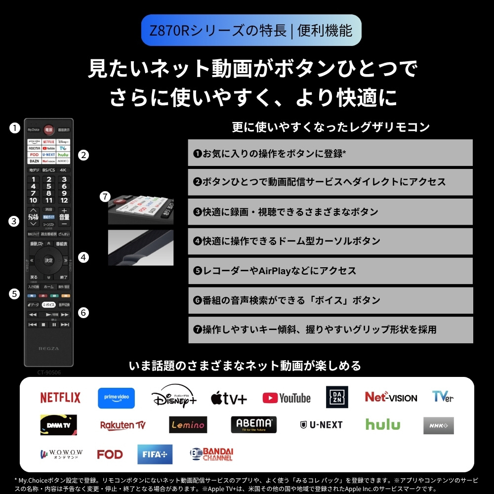 【リファービッシュ品】 液晶テレビ REGZA(レグザ) 50Z870R(R) [50V型 /Bluetooth対応 /4K対応 /BS・CS 4Kチューナー内蔵 /YouTube対応]