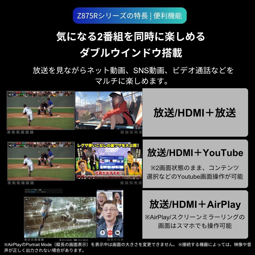 【リファービッシュ品】 液晶テレビ REGZA(レグザ) 55Z875R(R) [55V型 /Bluetooth対応 /4K対応 /BS・CS 4Kチューナー内蔵 /YouTube対応]