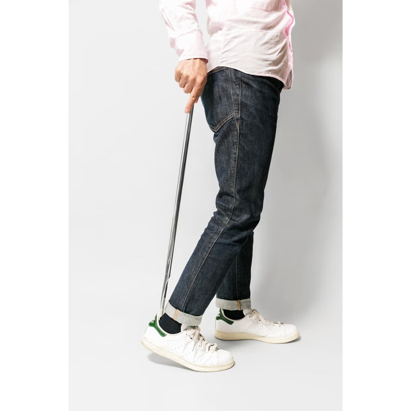 靴べら本体はアルミで構成されていて、先端は鍛造成形にて強度を高め、柄はユーザーに重さを感じさせないよう中空一体成形で製作されています。 重量は軽く、膝を曲げずに使用することができるこの靴べらは、すべてのユーザーにとって生活負担をなくすものになると同時に、玄関周りの景観も美しく保つことができます。