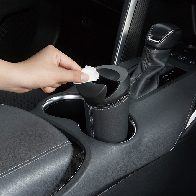 上質レザー調生地を巻いたボトルタイプの大容量ゴミ箱