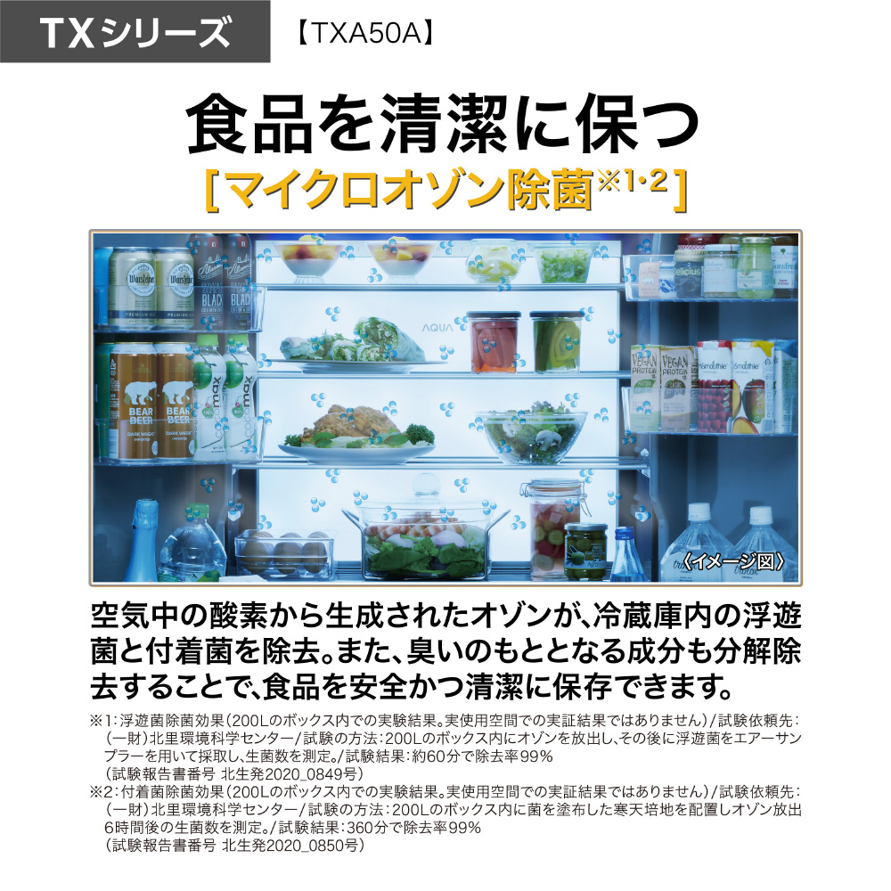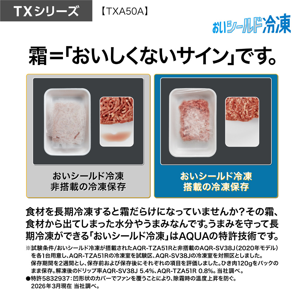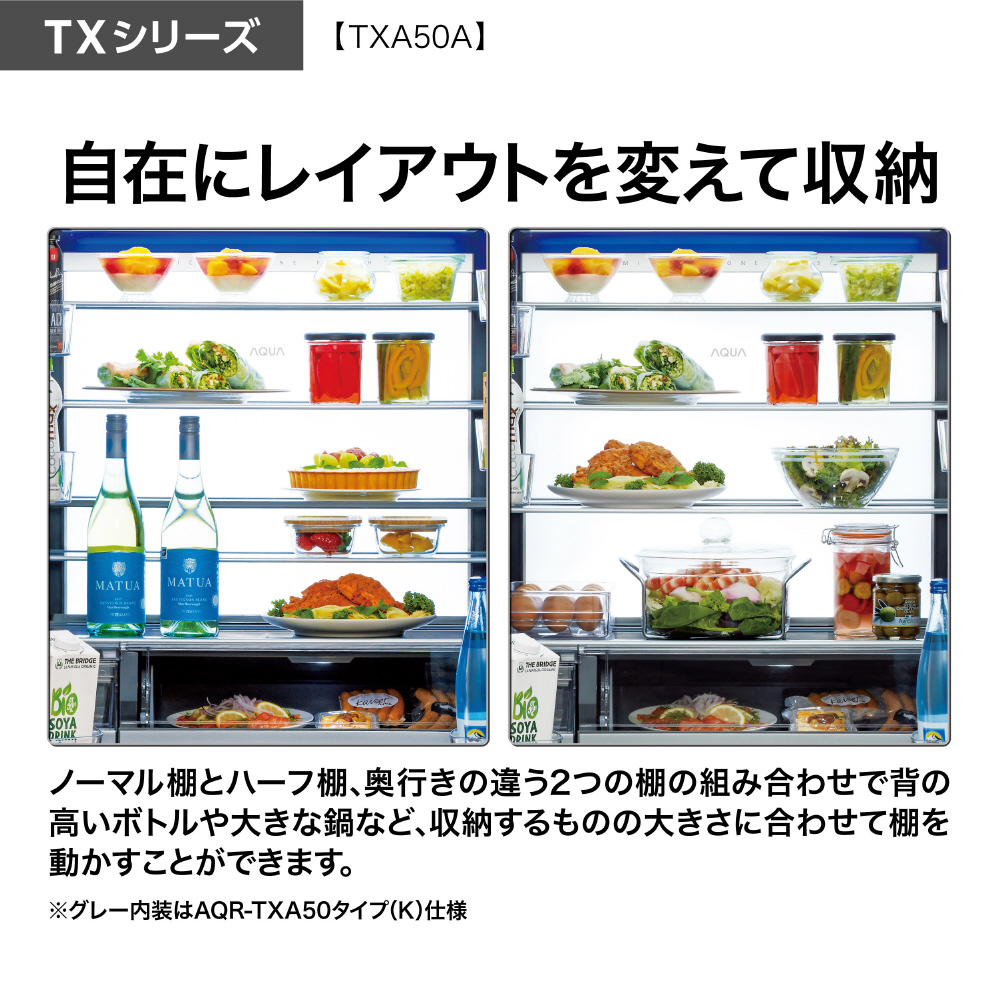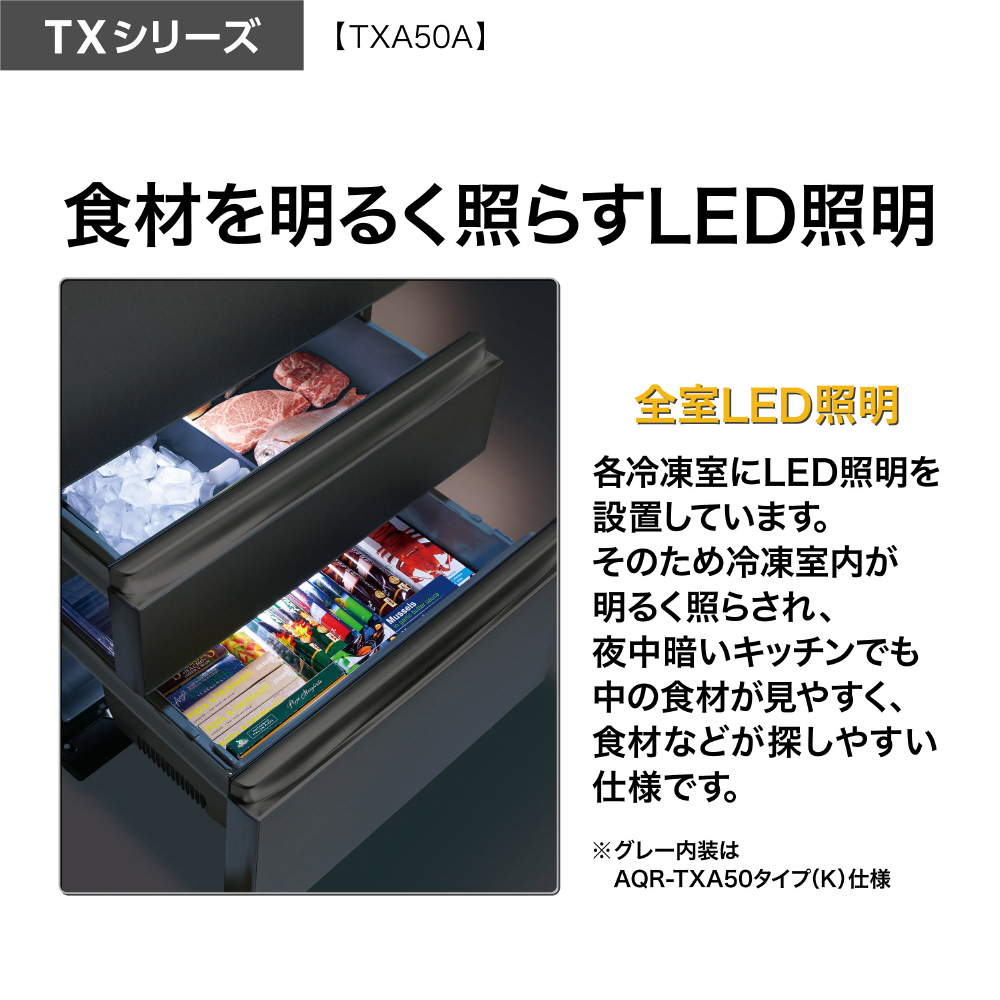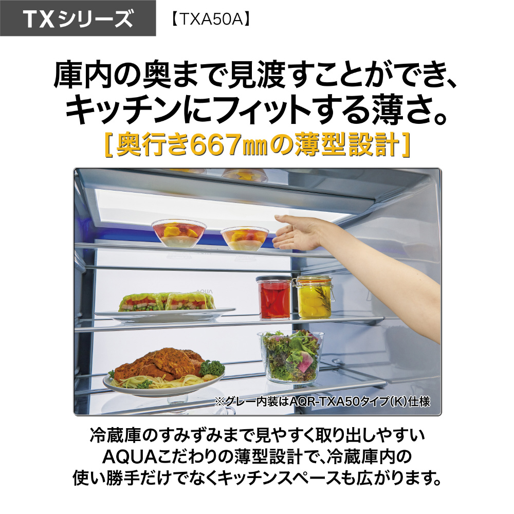 501L 5ドア冷蔵庫 AQUA マットクリアホワイト AQR-TXA50A(W) [53 /501L /5ドア /観音開きタイプ /2026年]