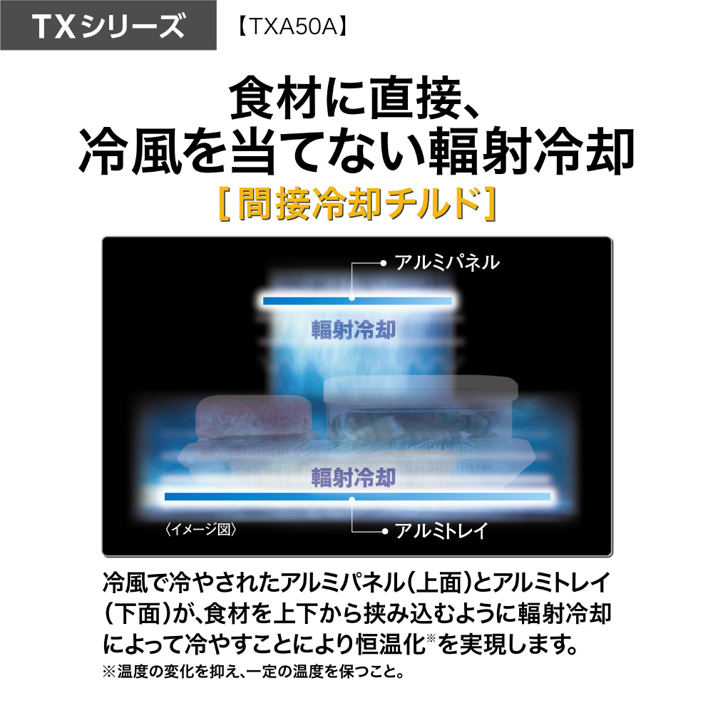 ・上下のアルミパネルの輻射冷却効果により傷みやすいひき肉も12日間長持ち「間接冷却チルド」