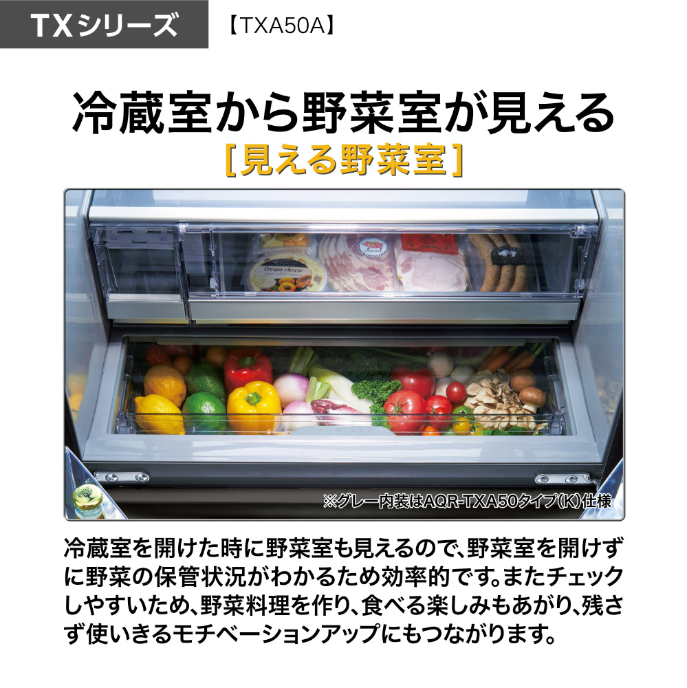 | 商品名 | 501L 5ドア冷蔵庫 AQUA マットクリアホワイト AQR-TXA50A(W) [53 /501L /5ドア /観音開きタイプ /2026年] |