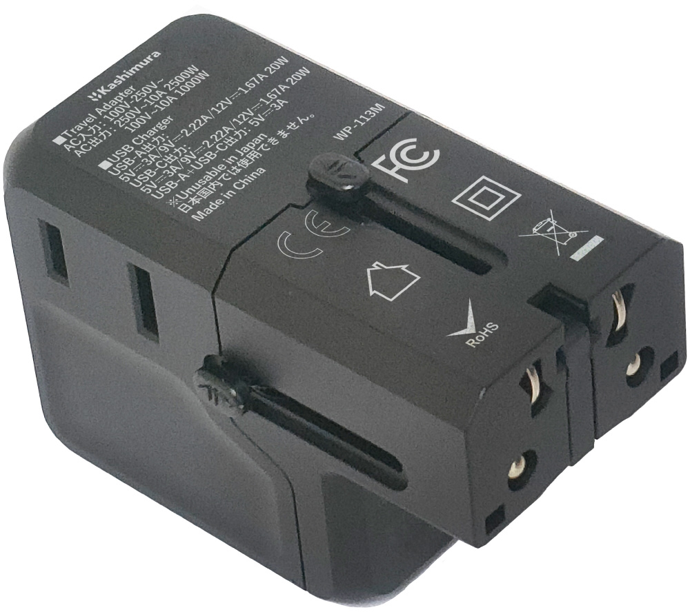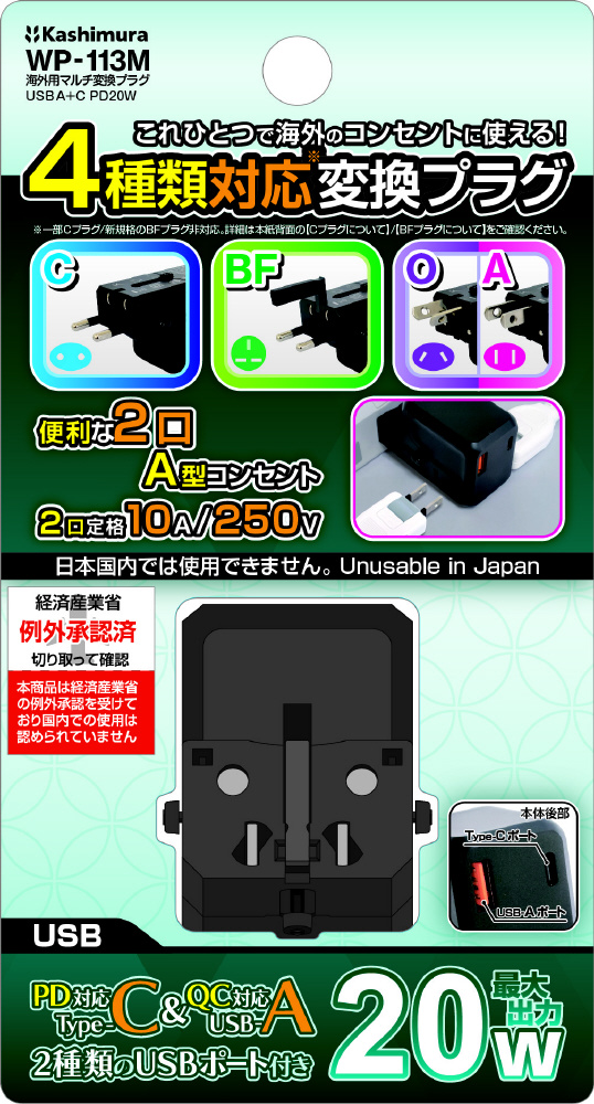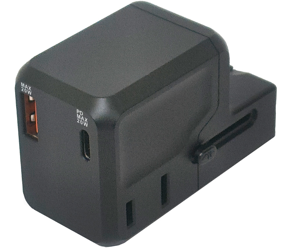 4種のコンセント対応のマルチ変換プラグ PD20W Type-Cポート付き