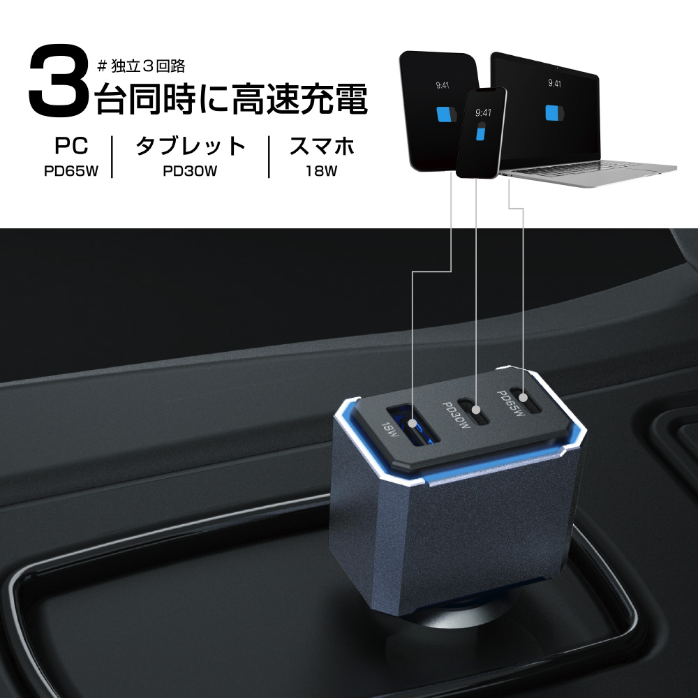 シガーチャージャー DC-113WUSB3ポートPD(65+30)W+18W DC-063