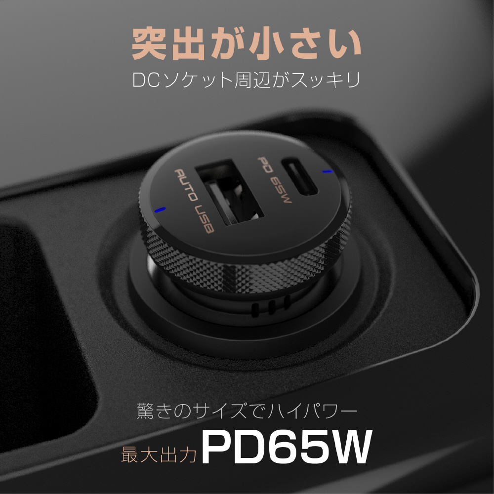 USBPD搭載のクルマ用ハイパワーUSB電源最大出力65W対応