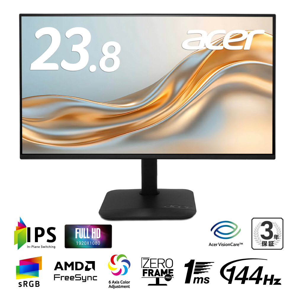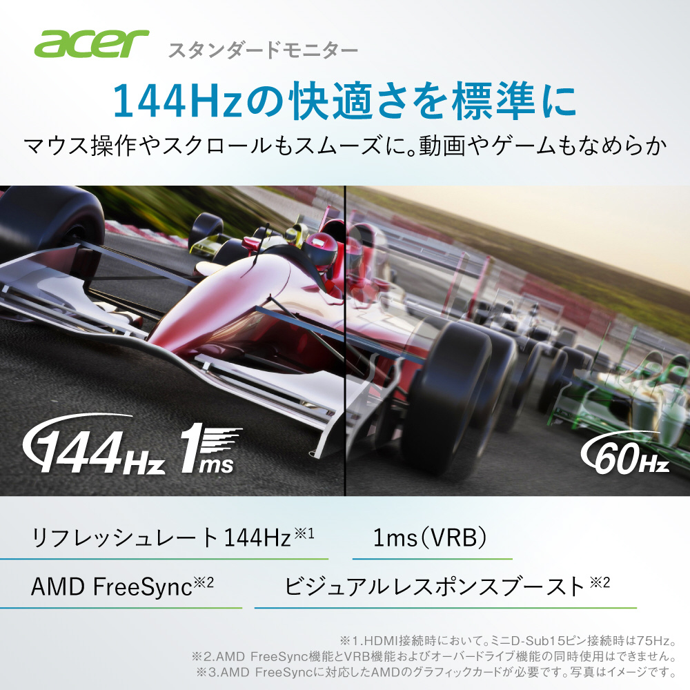 Acer モニター 23.8インチ IPS フルHD 144Hz 1ms(VRB) 非光沢 sRGB 99% AMD FreeSync ブルーライト低減 スピーカー ヘッドフォン端子 3.5mmステレオミニジャック 4辺フレームレス HDMI 1.4 ミニD-Sub 15ピン 6軸カラー