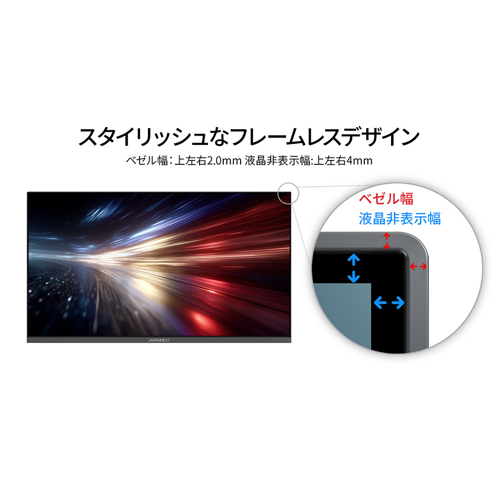21.5インチのVAパネルを搭載し、フルHD(1920×1080)解像度に対応した液晶モニターです。高画質VAパネルは、4000:1の高コントラスト比により黒が引き締まり、メリハリのある映像を実現します。