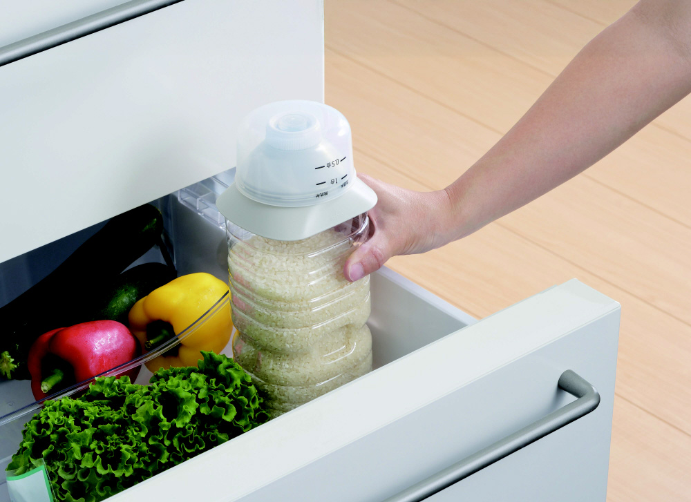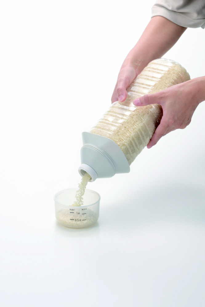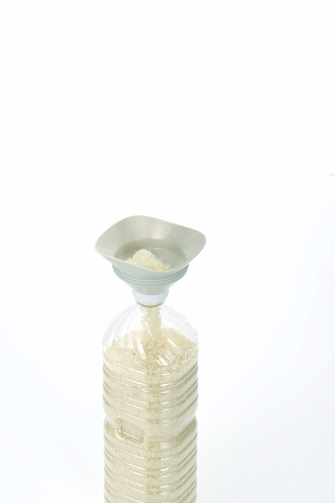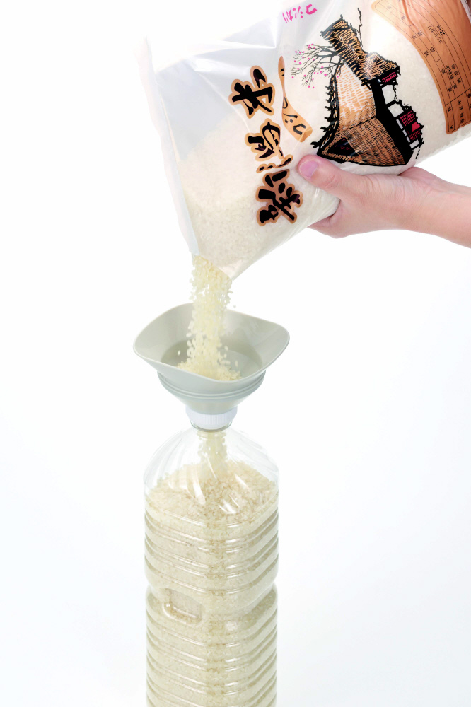 お米の計量、保存、移し替えがこれひとつ!ペットボトルを米びつとして使えます。