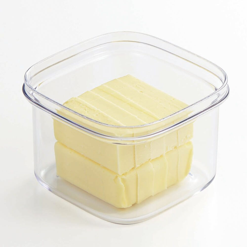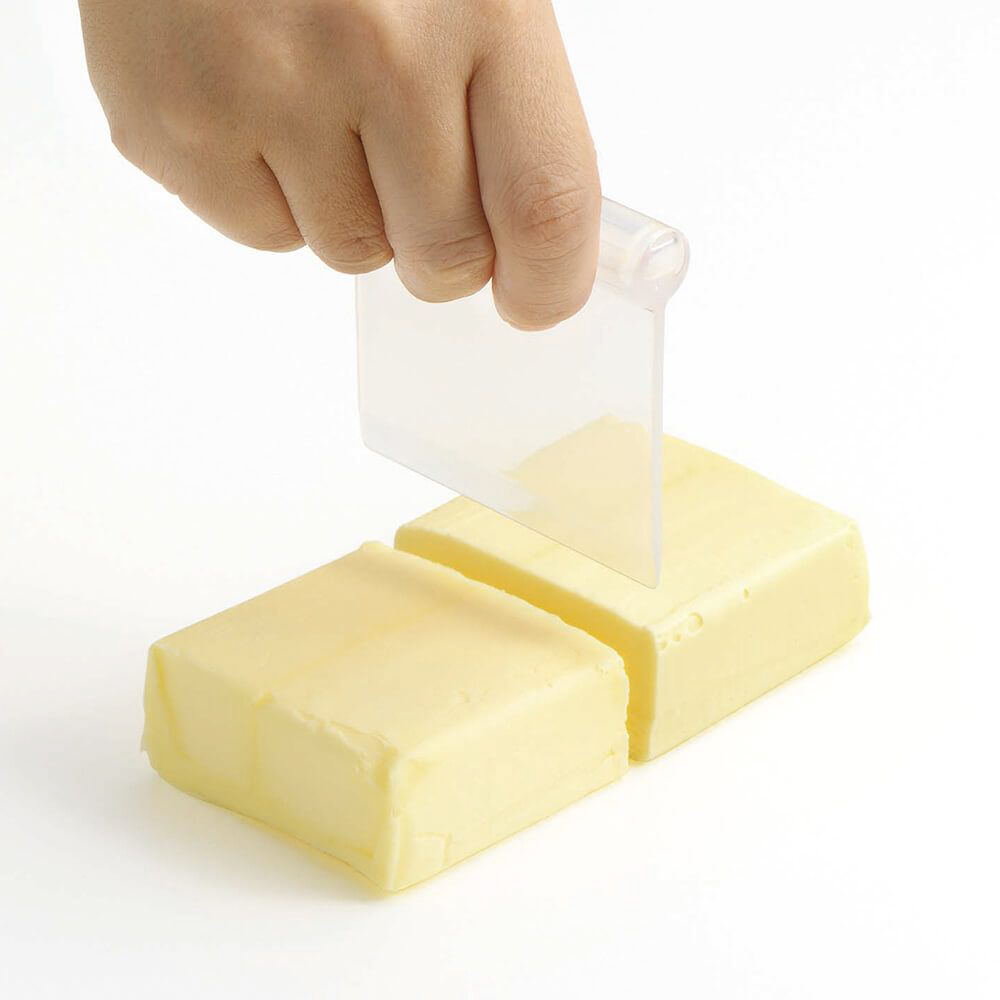 冷蔵庫から出したばかりの冷たくて硬いバターをカットでき、そのまま保存できるケース