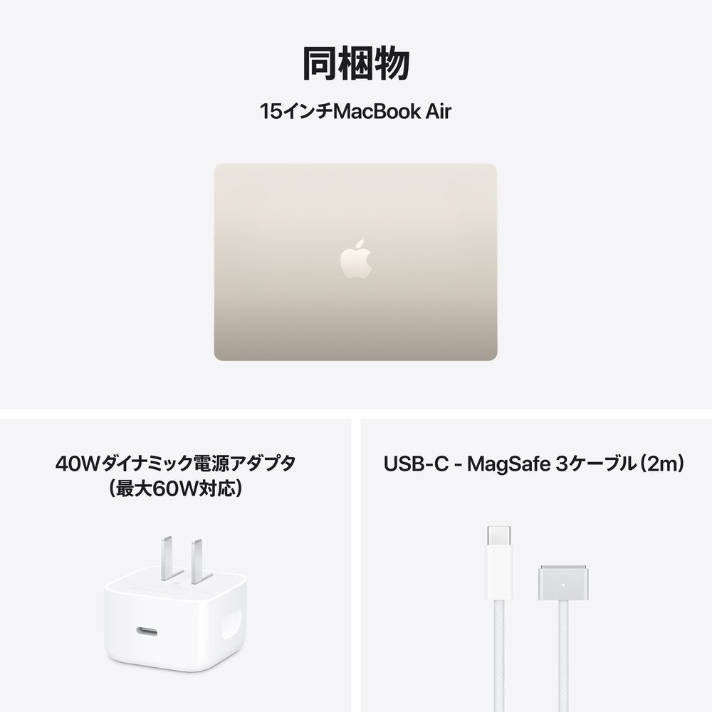MacBook Air 15インチ Apple M5チップ搭載モデル [2026年春モデル/SSD 1TB/メモリ24GB/10コアCPUと10コアGPU] スターライト MDVF4J/A ※発売日以降のお届け