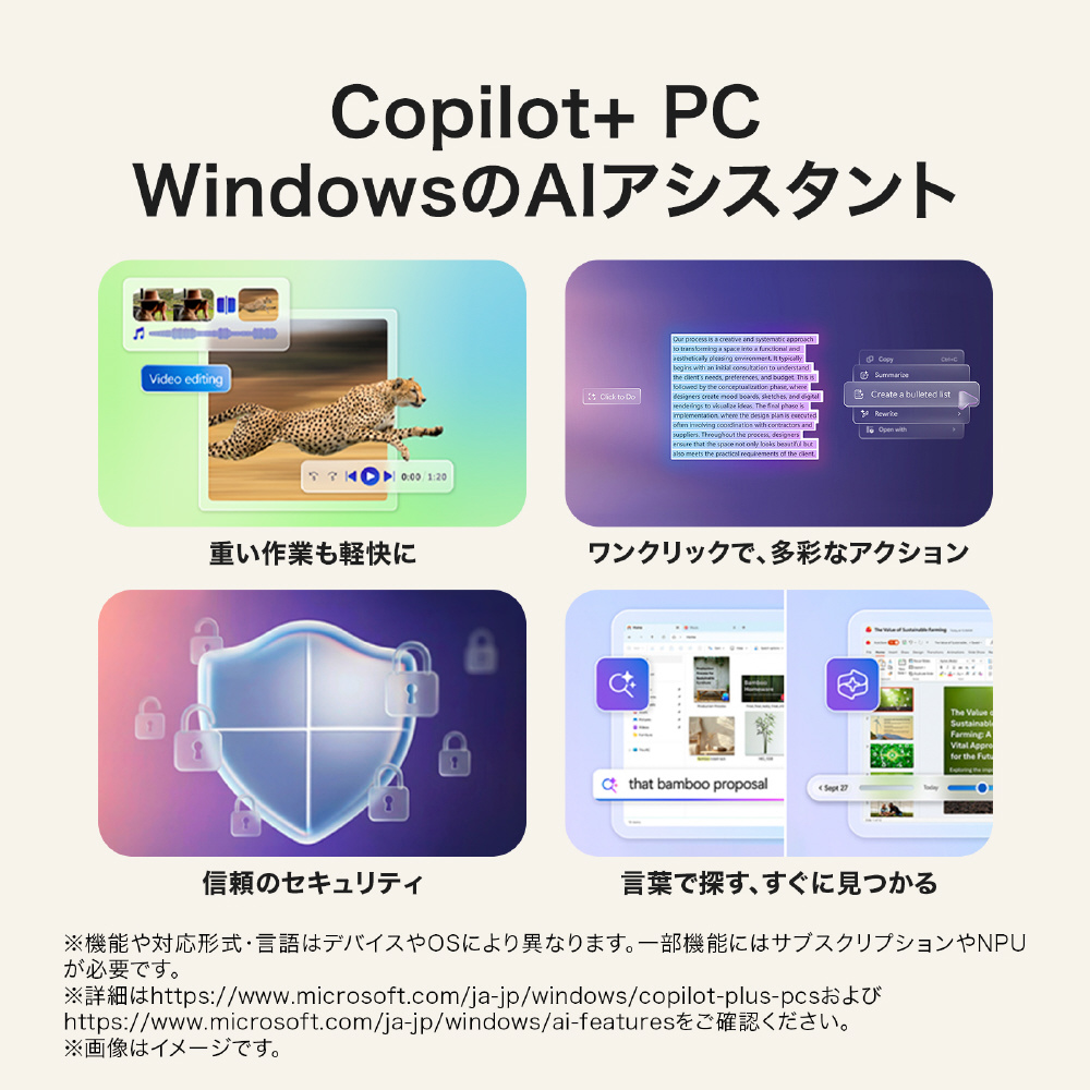 * 本ページに掲載するすべての画像はイメージです。画像は機能理解を高めるために演出されており、実際の使用体験とは異なる場合があります。