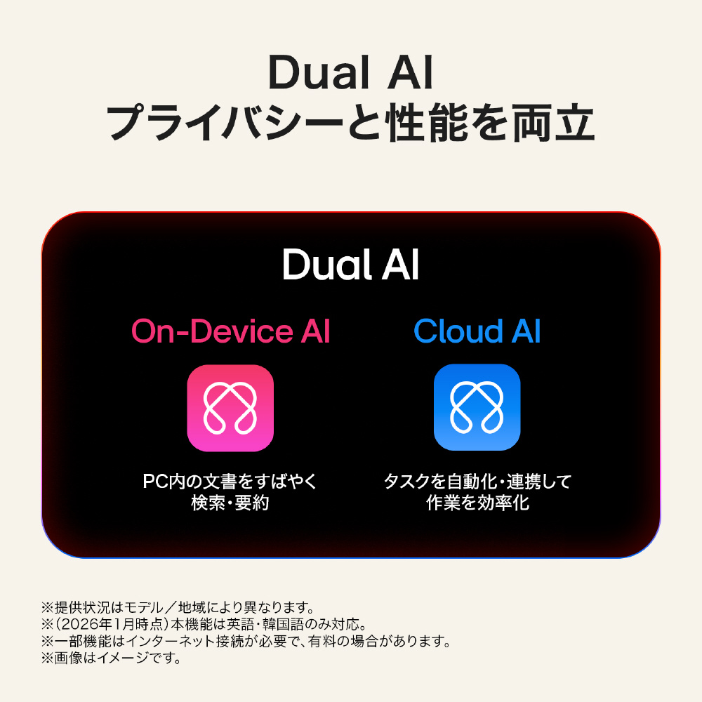 ※ LGでは、SSDの増設ついては有償オプションサービス(国内販売品対象)を提供しています。対応可否・価格はモデルにより異なります。詳細はLG公式サイトにて、「ノートPC アップグレードサービス」をご確認ください。