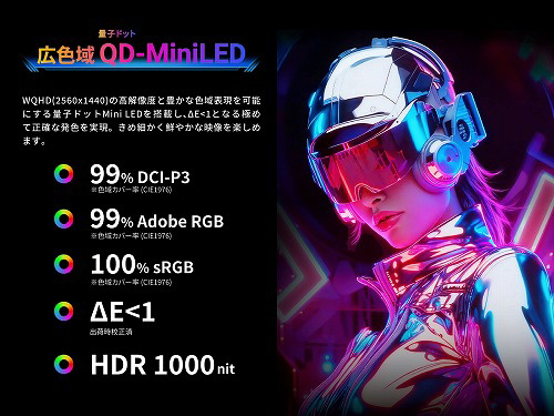 ■量子ドット技術採用、広色域に対応