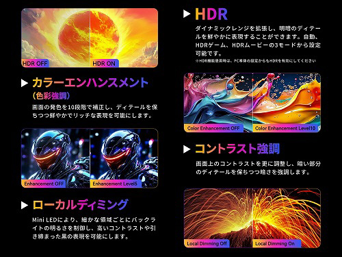 ※HDRを有効にした場合、一部OSDの設定が変更不可となります。