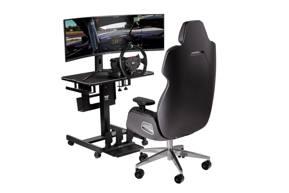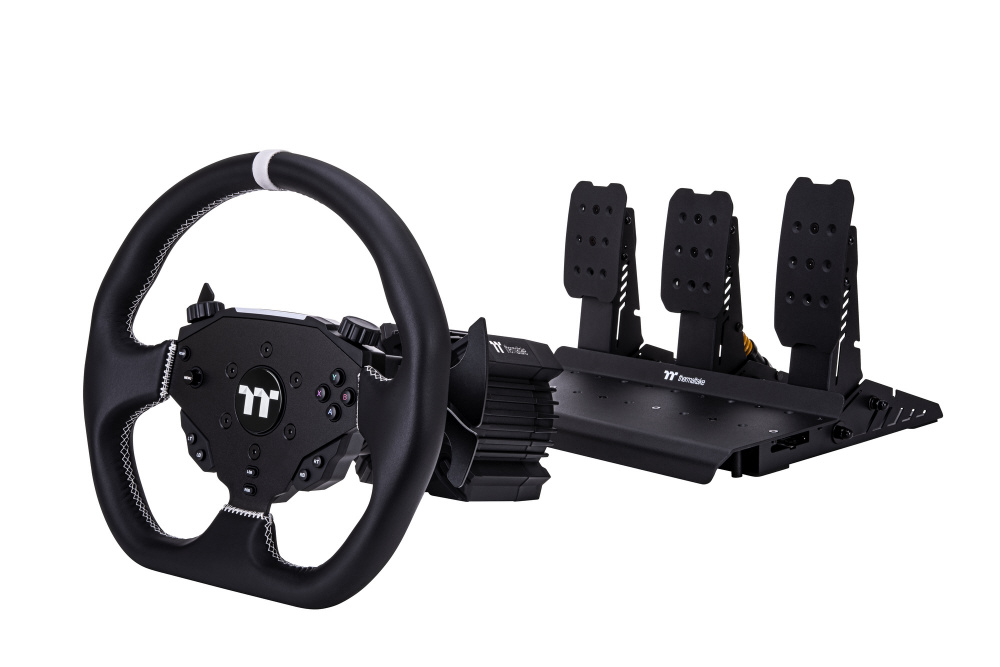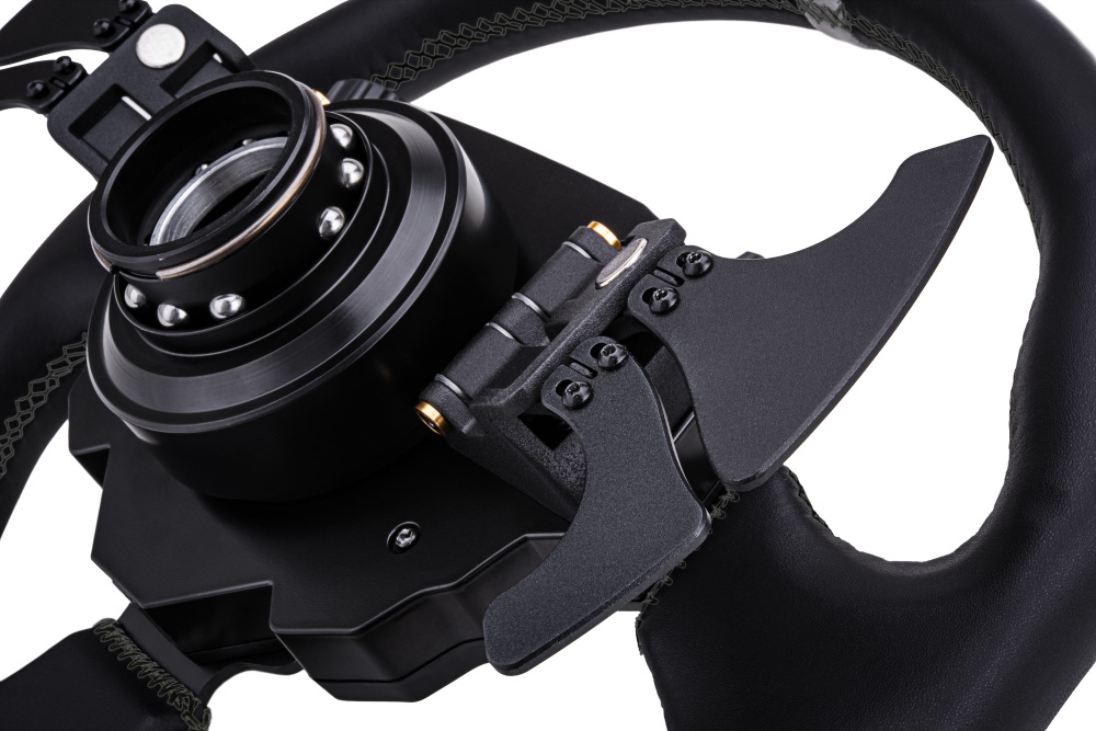 | 仕様2 | ●ボタン類構成:シフター×2、クラッチパドル×2、サムロータリーエンコーダー×2、ファンクションボタン×12、5方向ジョイスティック×1 ●LED:あり、RGB RPM指示ライト (10個カスタマイズ可能) ●クイックリリース:対応 ●ペダルセンサー:ホールセンサー ●ペダル間隔:130mm ●ペダルプレート高さ:223.2mm ●滑り止めパッド:あり ●テーブルクランプ:あり |
