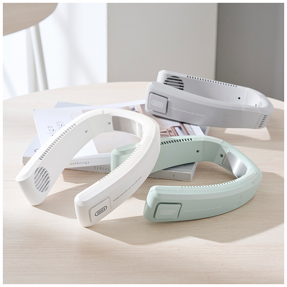 首元に冷却プレートが付いたToffy ハッピーコレクションのハンズフリーネックファン