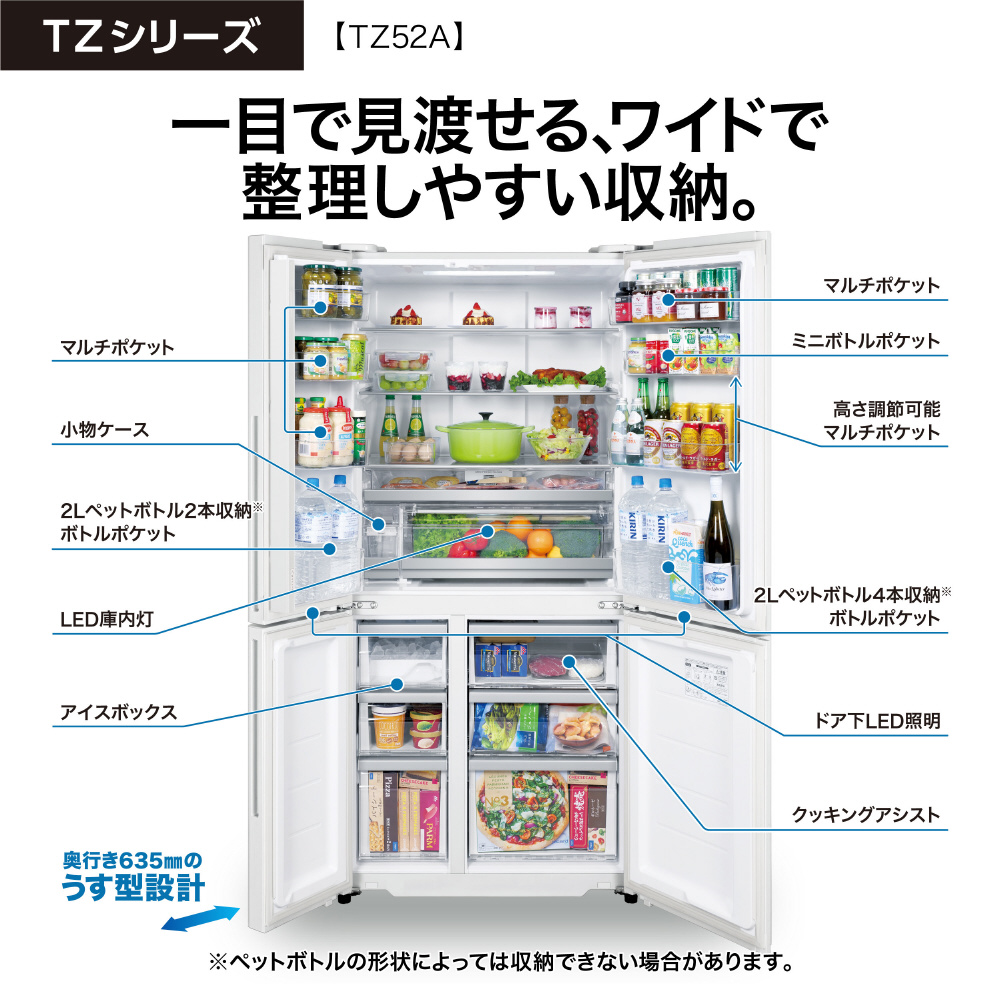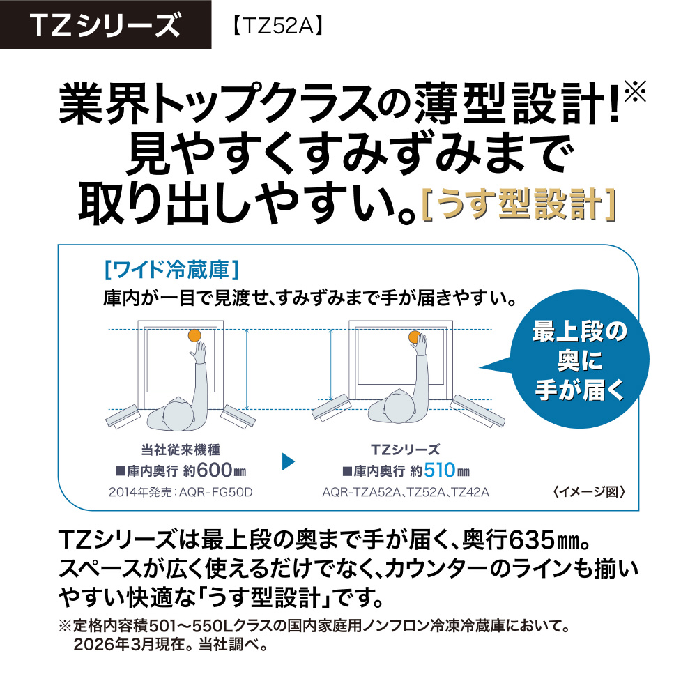 | 商品名 | 518L 4ドア冷蔵庫 AQUA ダークウッドブラウン AQR-TZ52A(T) [83 /518L /4ドア /観音開きタイプ /2026年]【基本設置料金セット】 |