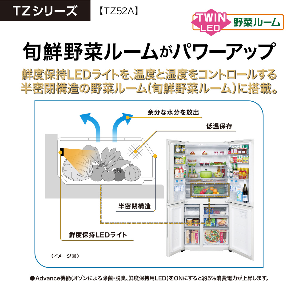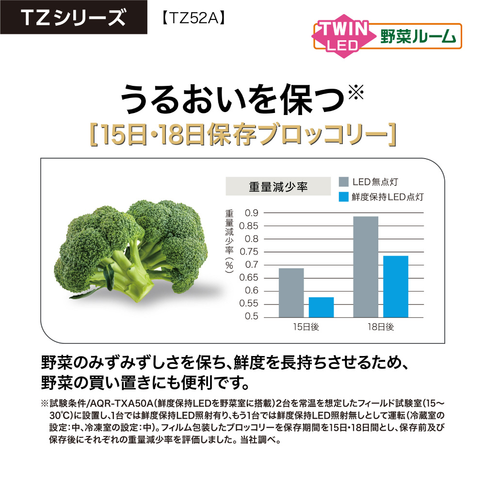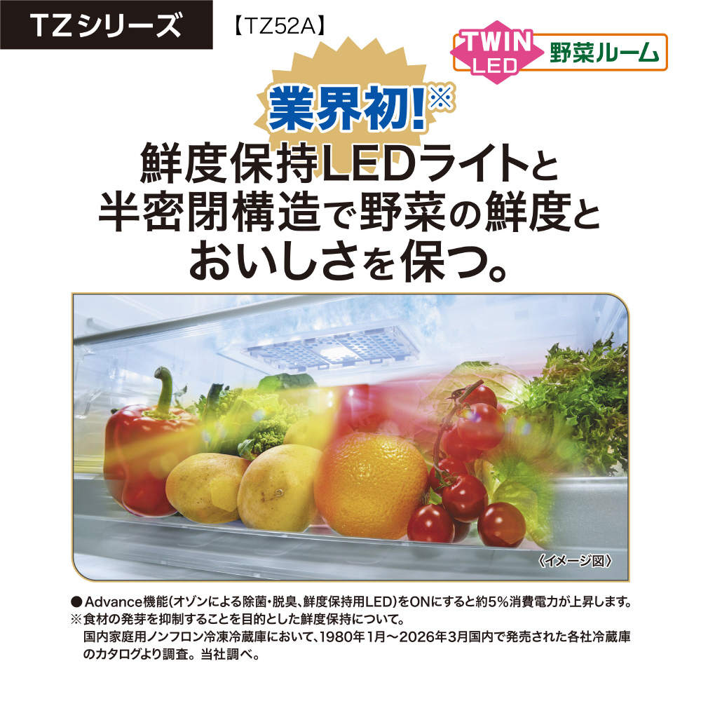 ・発芽抑制と鮮度保持を同時に実現『ツインLED野菜ルーム』