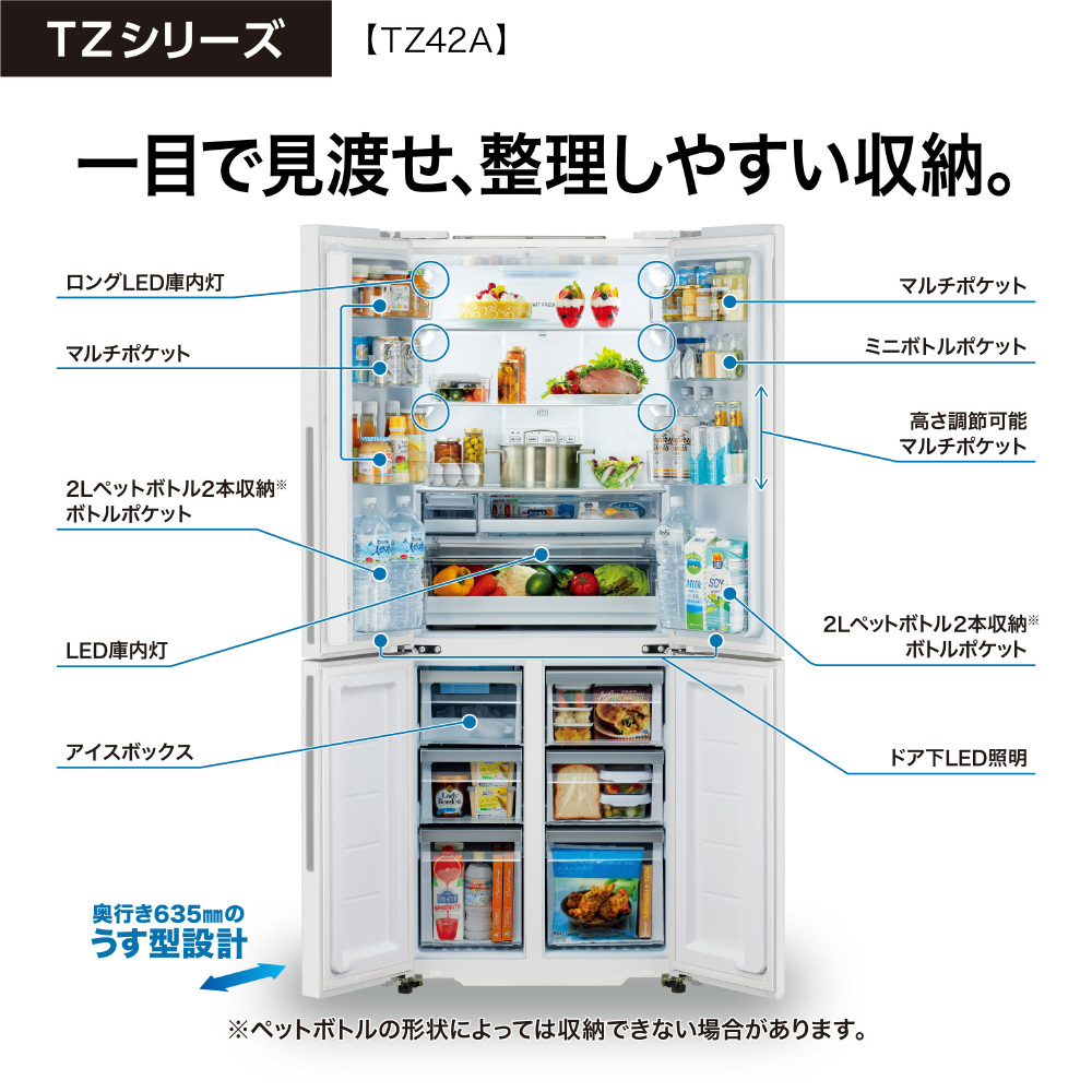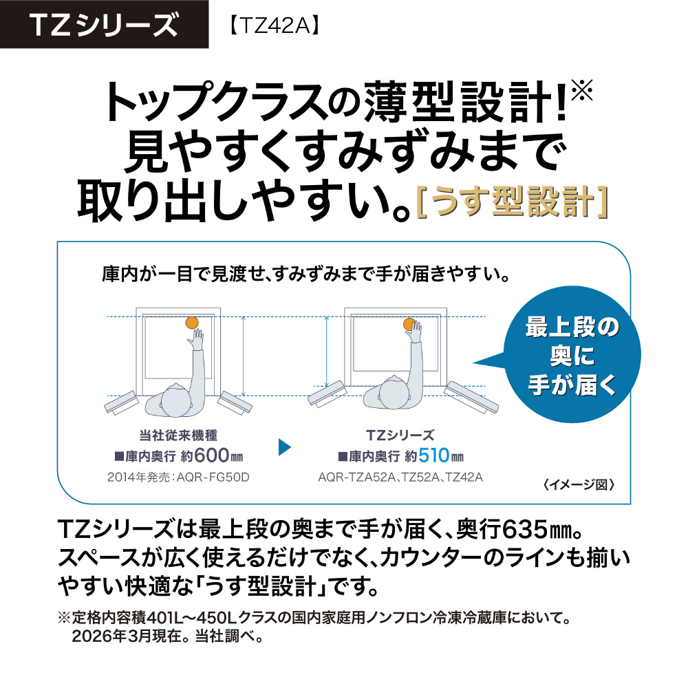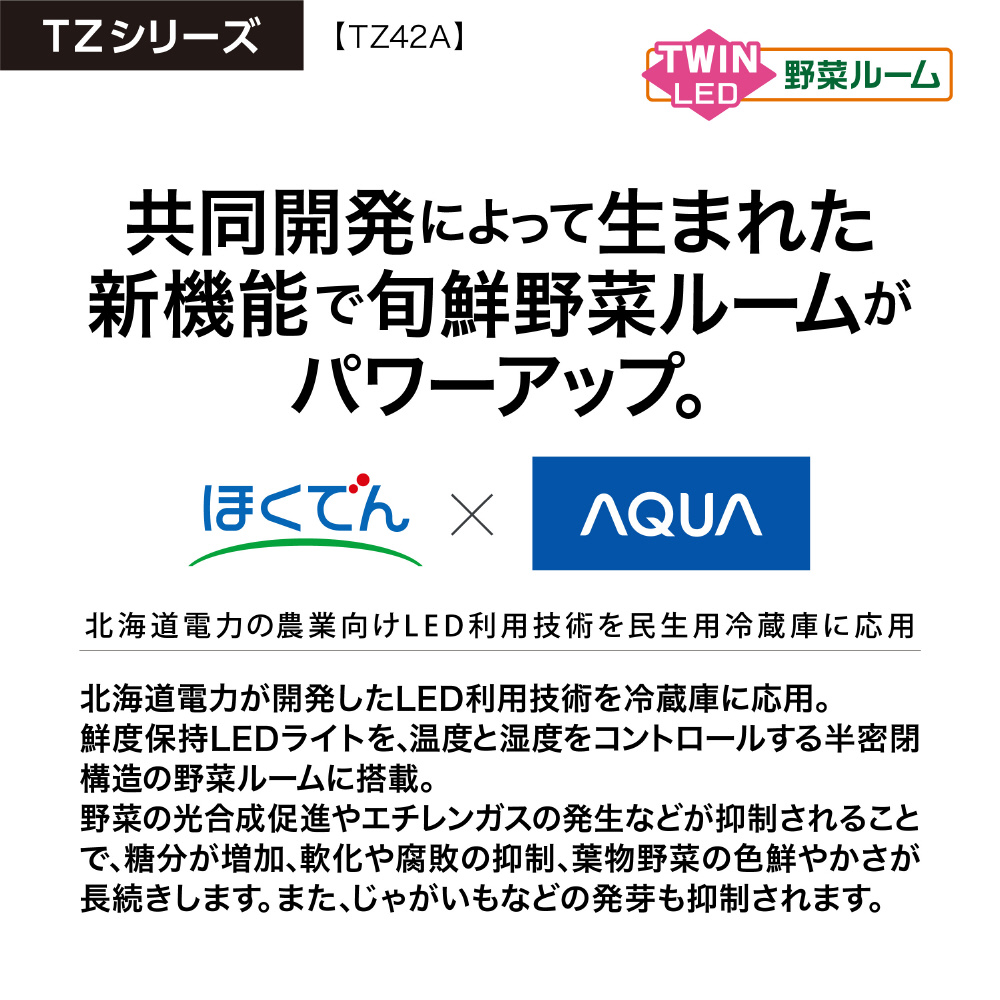 | 商品名 | 420L 4ドア冷蔵庫 AQUA パールグレー AQR-TZ42A(H) [70 /420L /4ドア /観音開きタイプ /2026年]【基本設置料金セット】 |