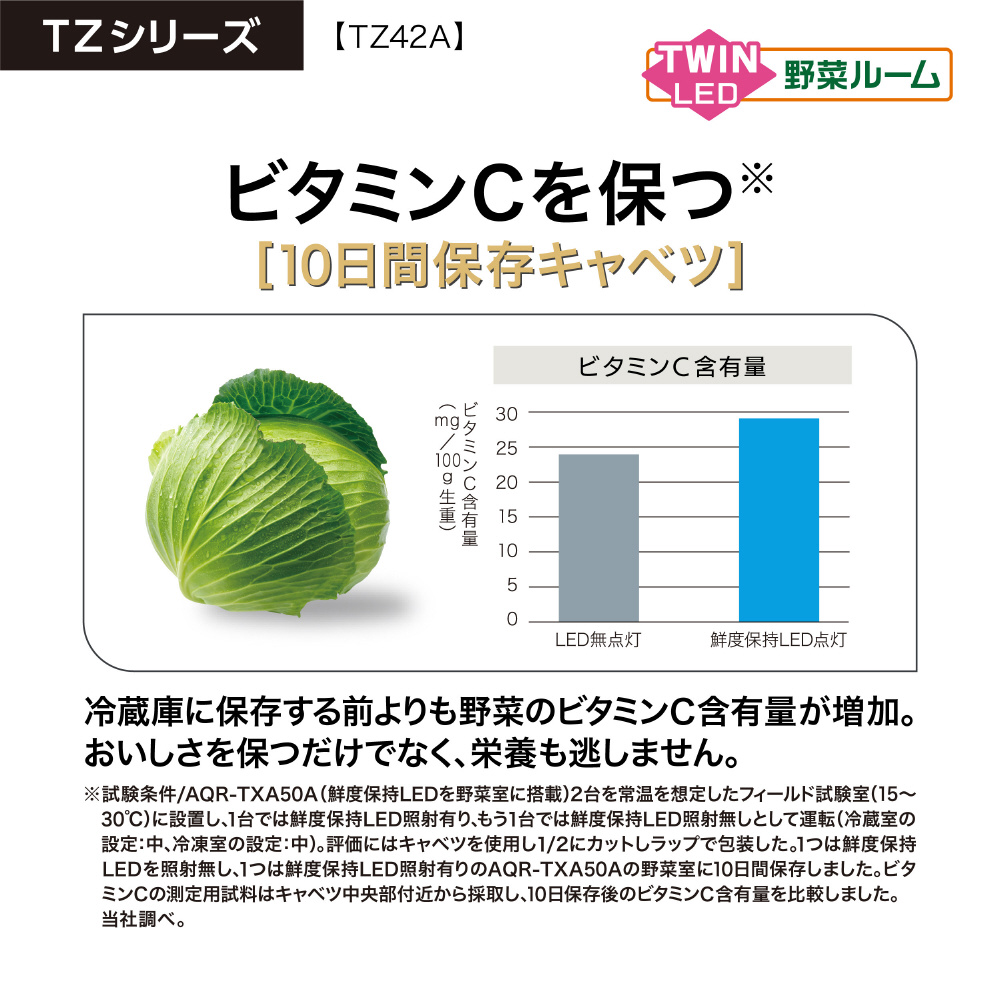・発芽抑制と鮮度保持を同時に実現『ツインLED野菜ルーム』